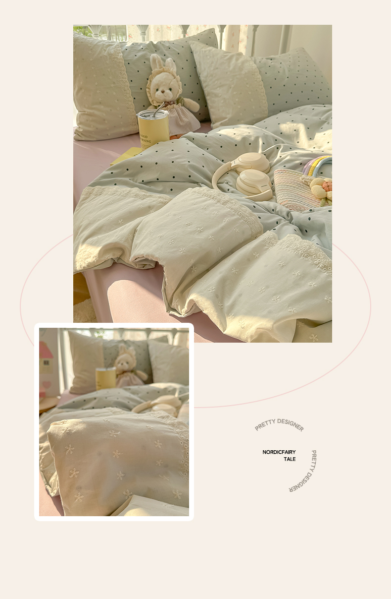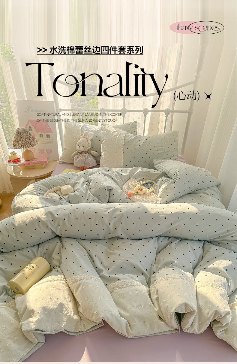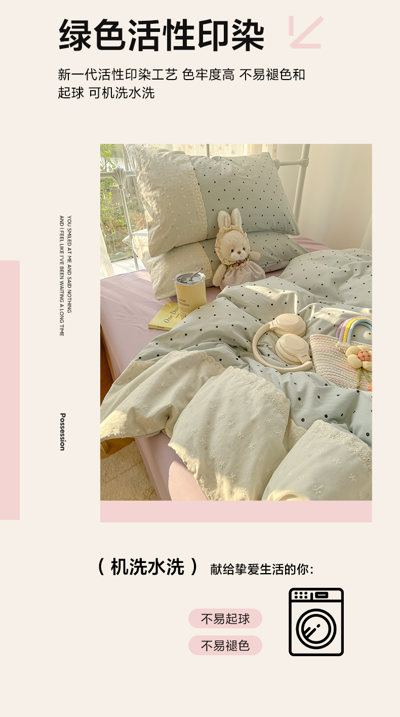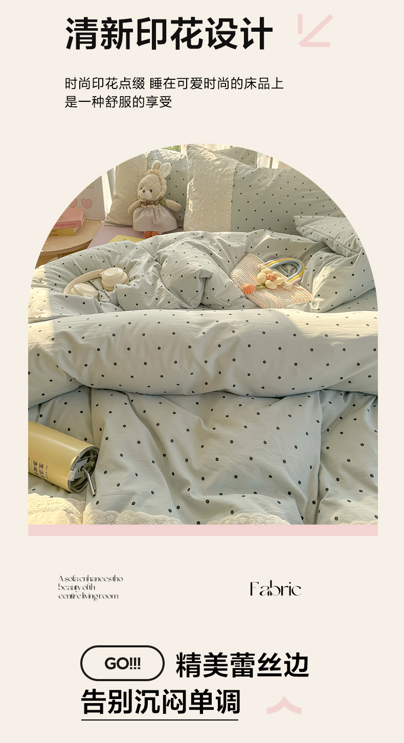 当前位置: 91家纺网 > 商品网购 > 床品套件 > 四件套 > 其它四件套 > 韩巢家纺 2025新款法式蕾丝花边被套直播热销款四件套学生宿舍床上三件套(提供卖家秀) 蓝灰波点【蕾丝花边款】
