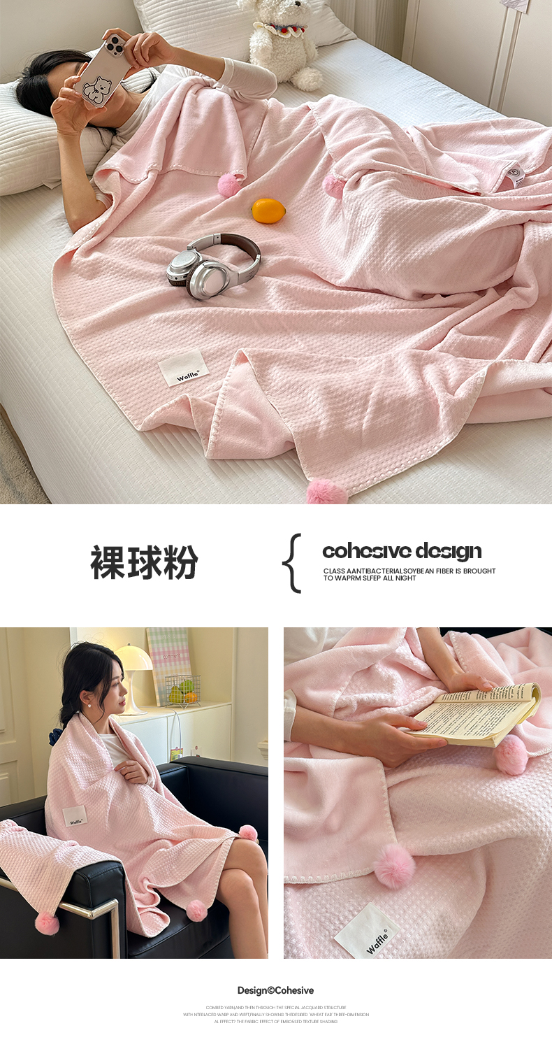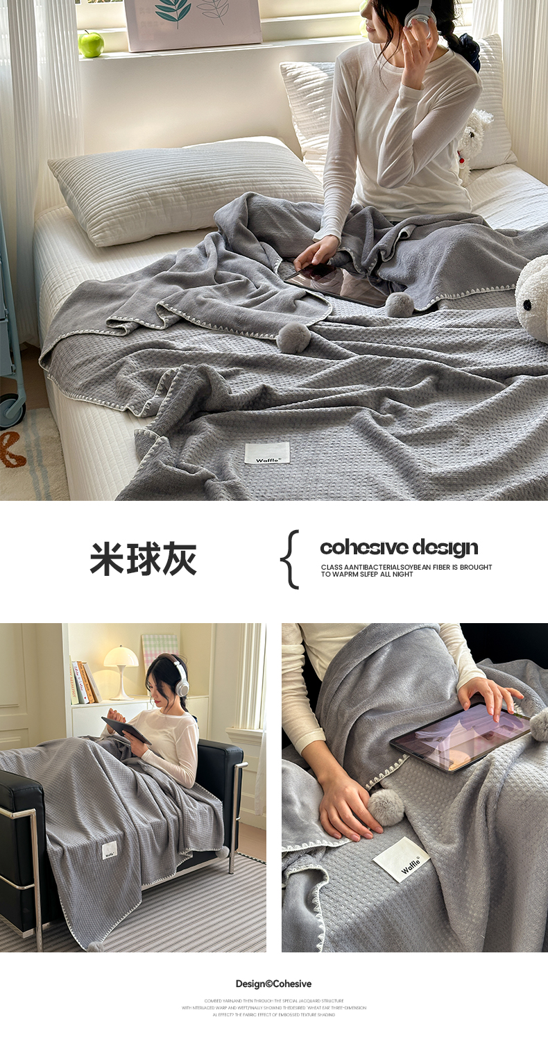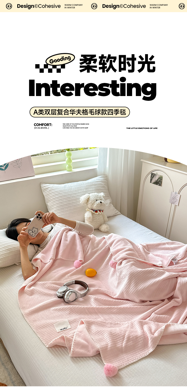 (总)艾佳 2025新款华夫格升级版毛球款四季毯盖毯毛毯毯子