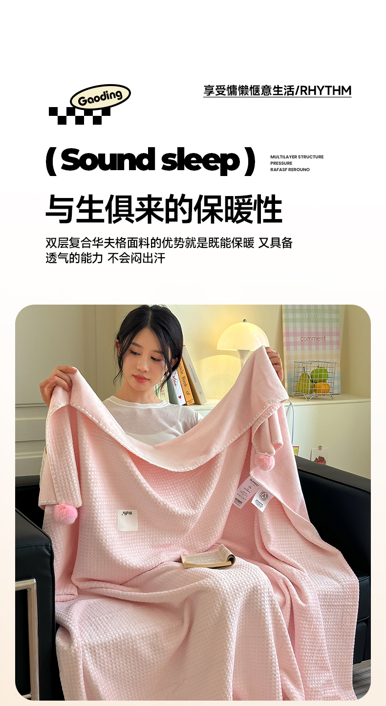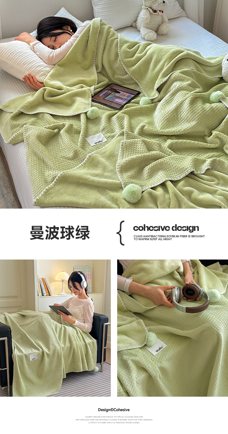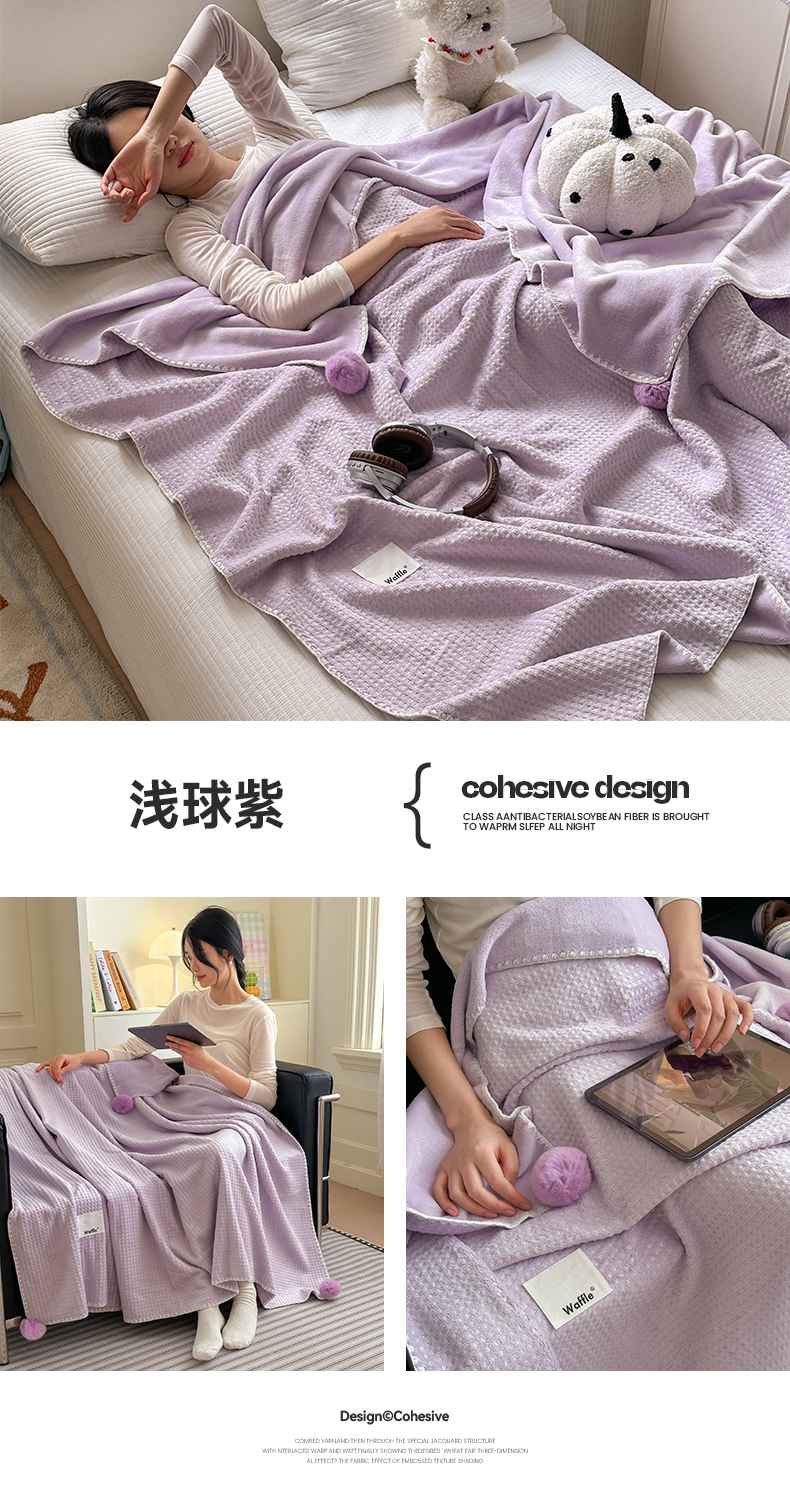 (总)艾佳 2025新款华夫格升级版毛球款四季毯盖毯毛毯毯子