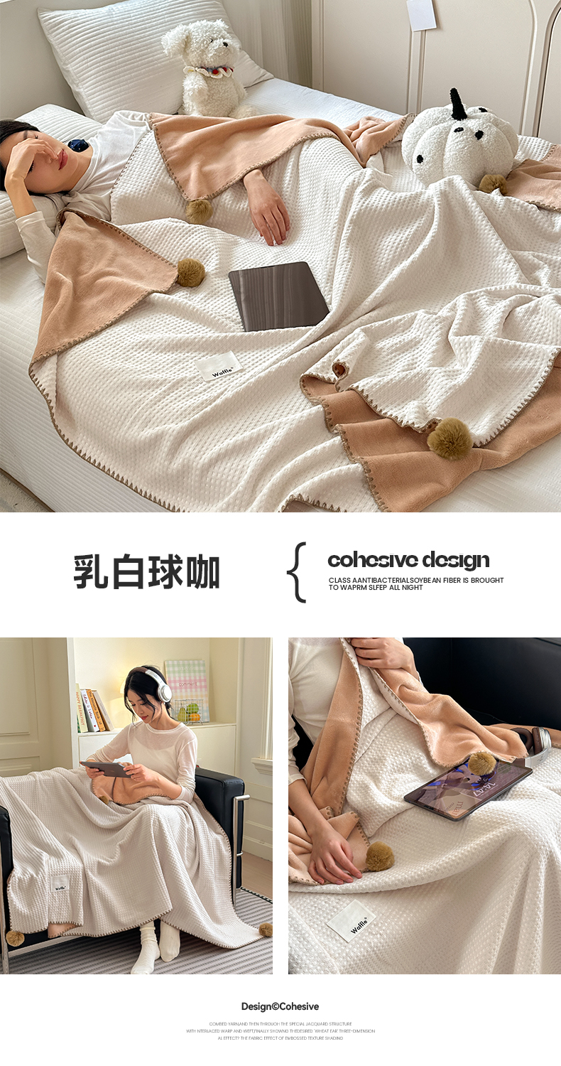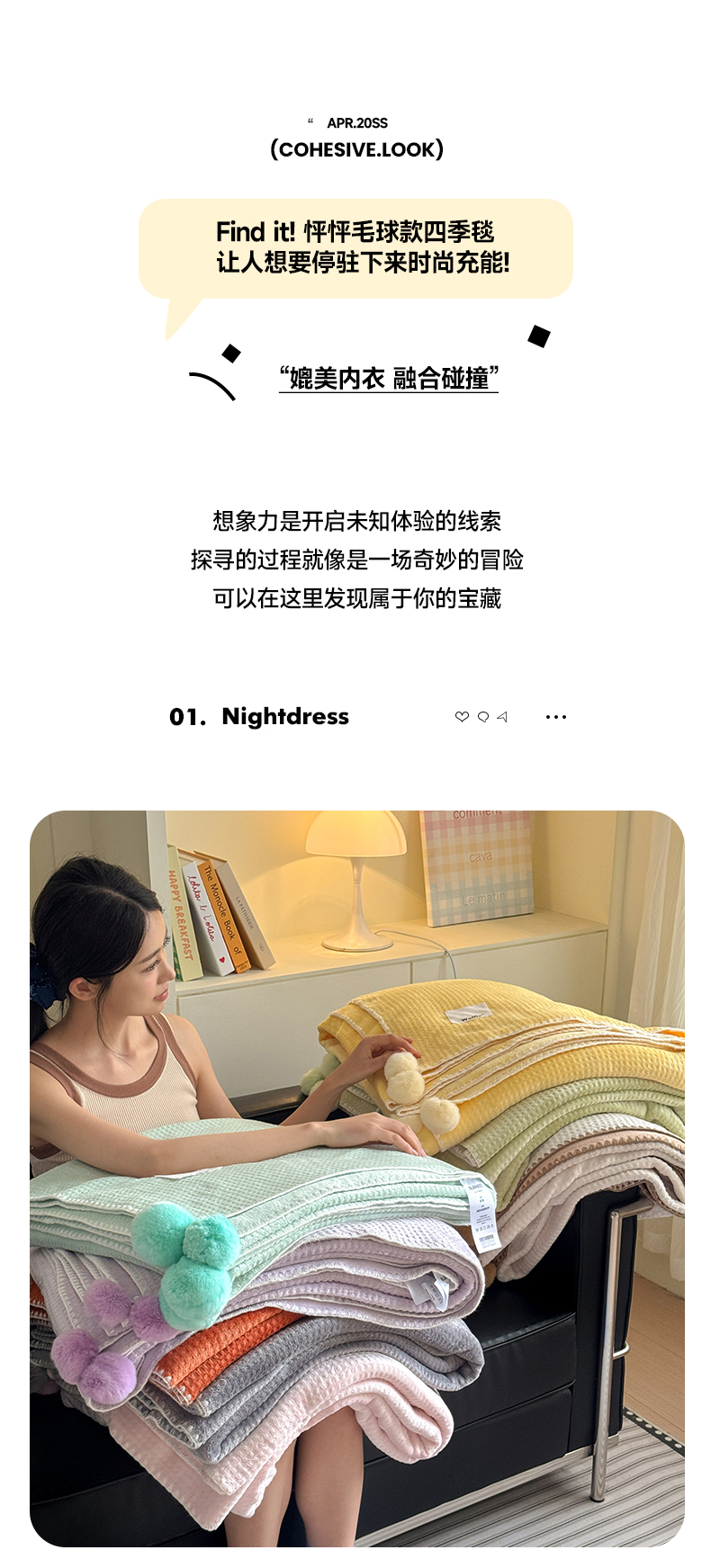 商品名称:(总)艾佳 2025新款华夫格升级版毛球款四季毯盖毯毛毯毯子