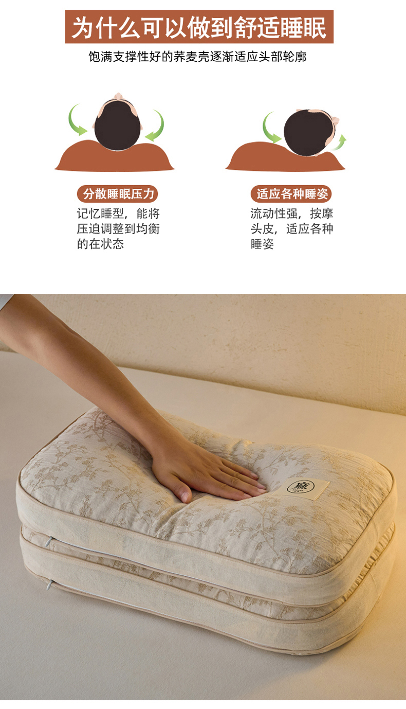 (总)明星枕业 2025新款棉麻荞麦枕高度可调节护颈椎枕头学生成人专用硬枕芯单枕芯,初秋花园 30x60cm单枕/只,梦想庄园 30x60cm单枕/只,组合图仅供展示 30x60cm单枕/只