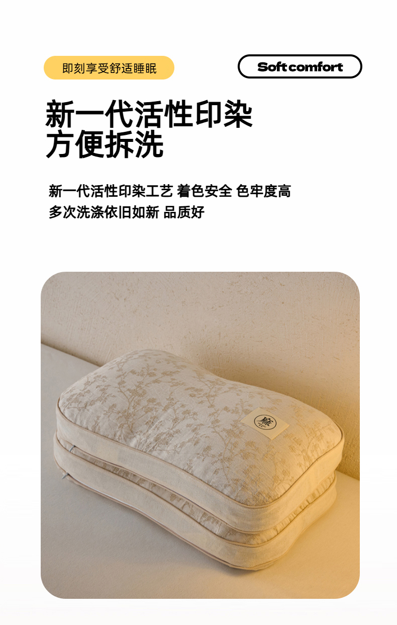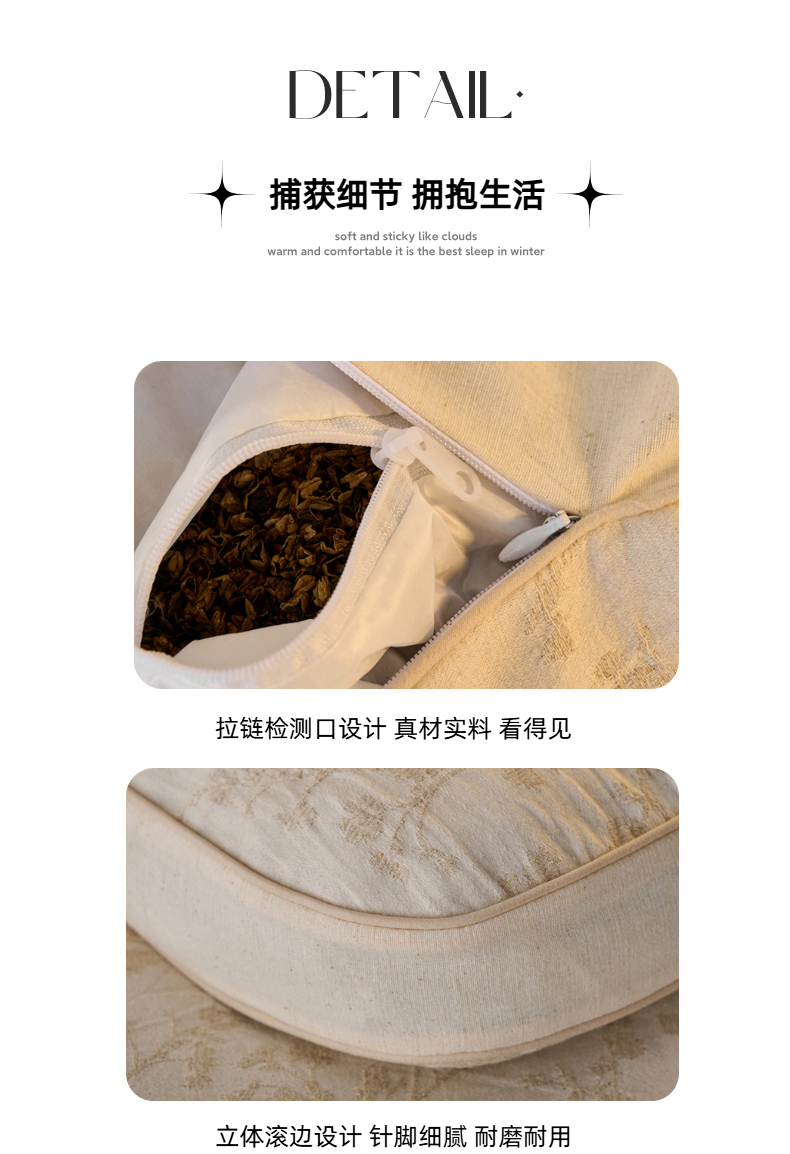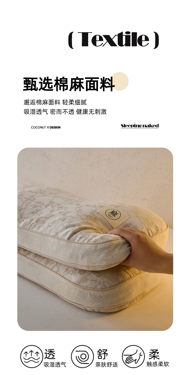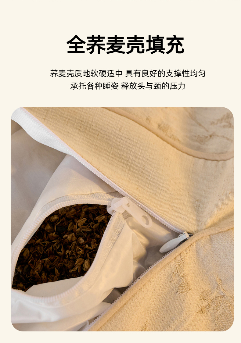 商品名称:(总)明星枕业 2025新款棉麻荞麦枕纯棉成人枕头亚麻提花家用学枕芯生助睡眠可拆卸护颈