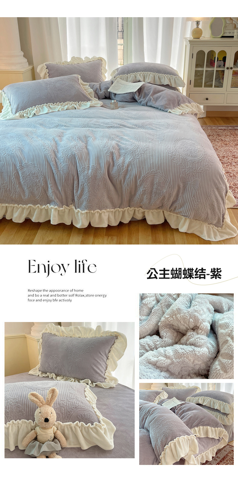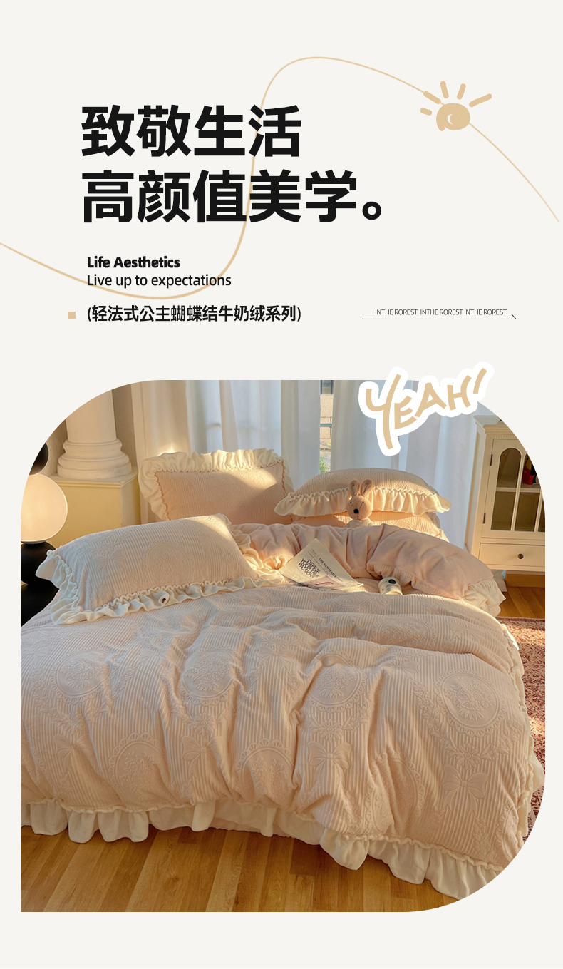 当前位置: 91家纺网 > 商品网购 > 床品套件 > 四件套 > 牛奶绒四件套 > 六巷胡同 2025新款轻法式公主蝴蝶结提花牛奶绒四件套-风格一 公主蝴蝶结-粉