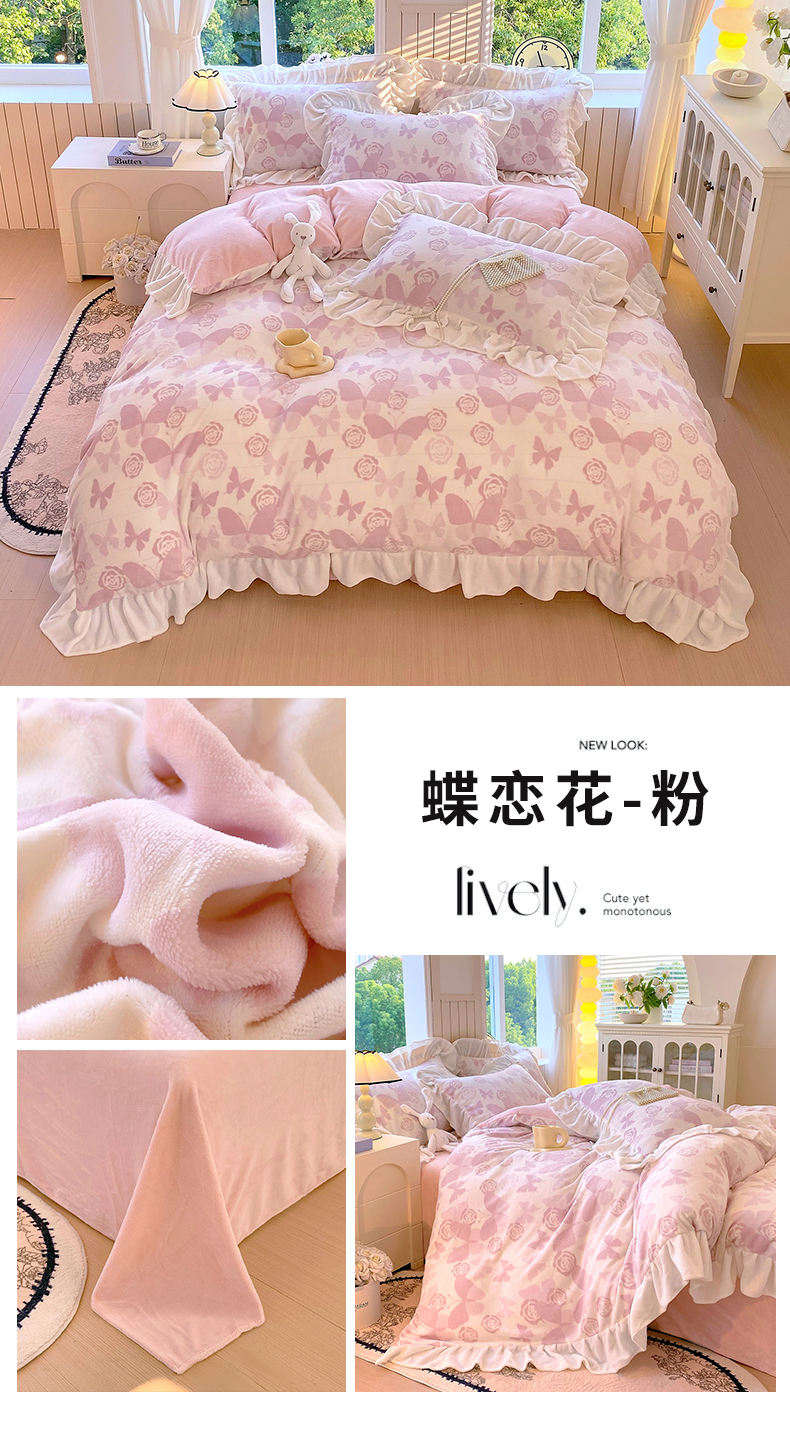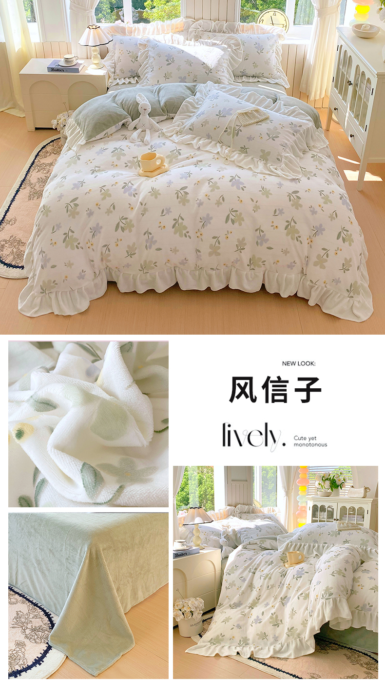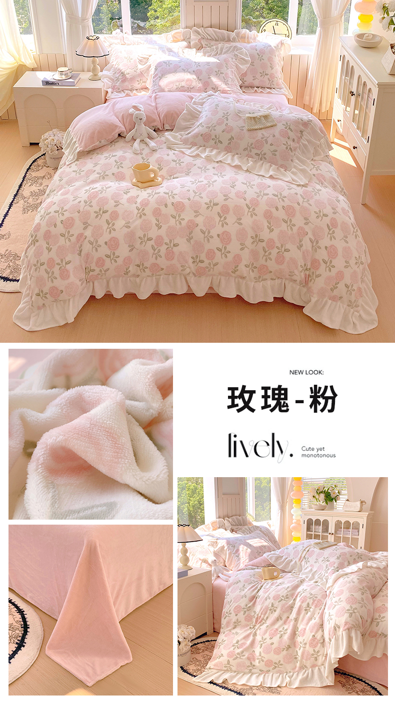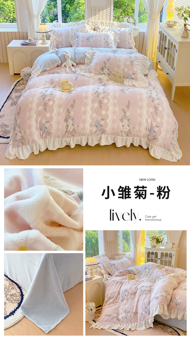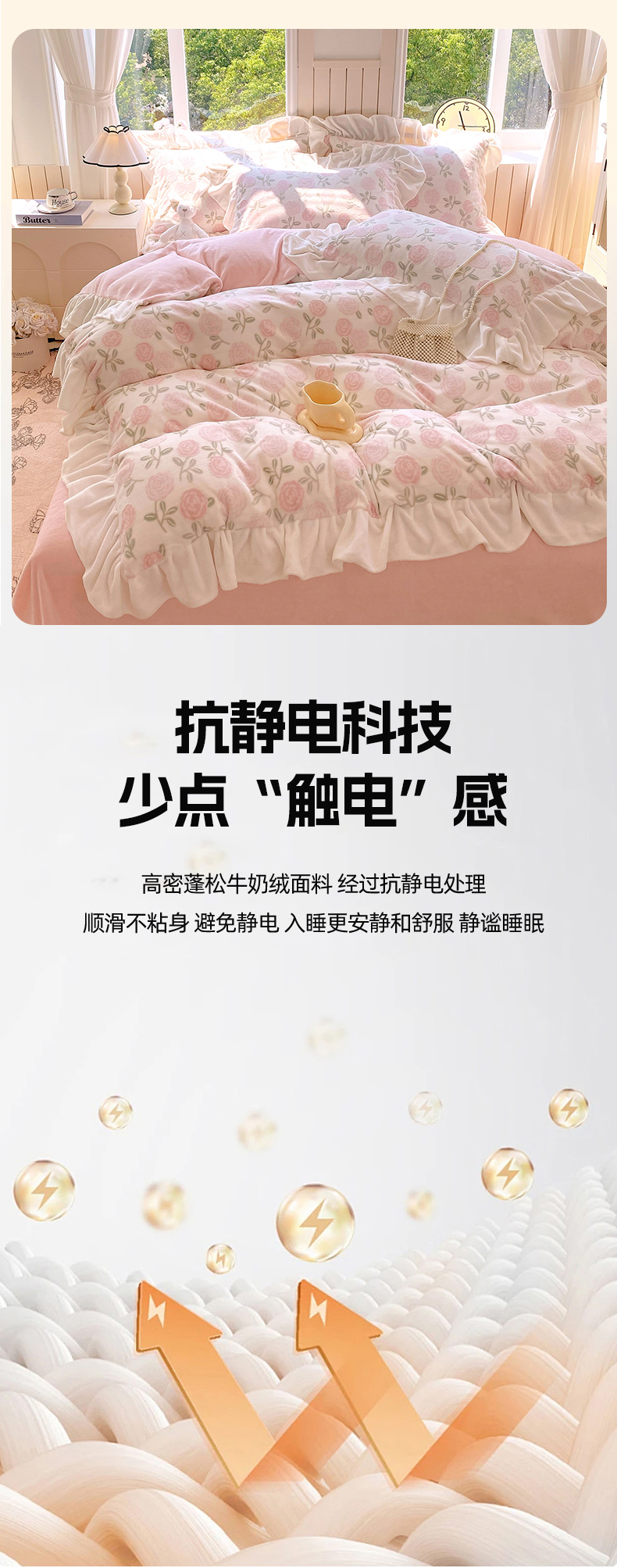 启程家纺 2025新款花边雕花牛奶绒四件套 花野漫屿-花边款