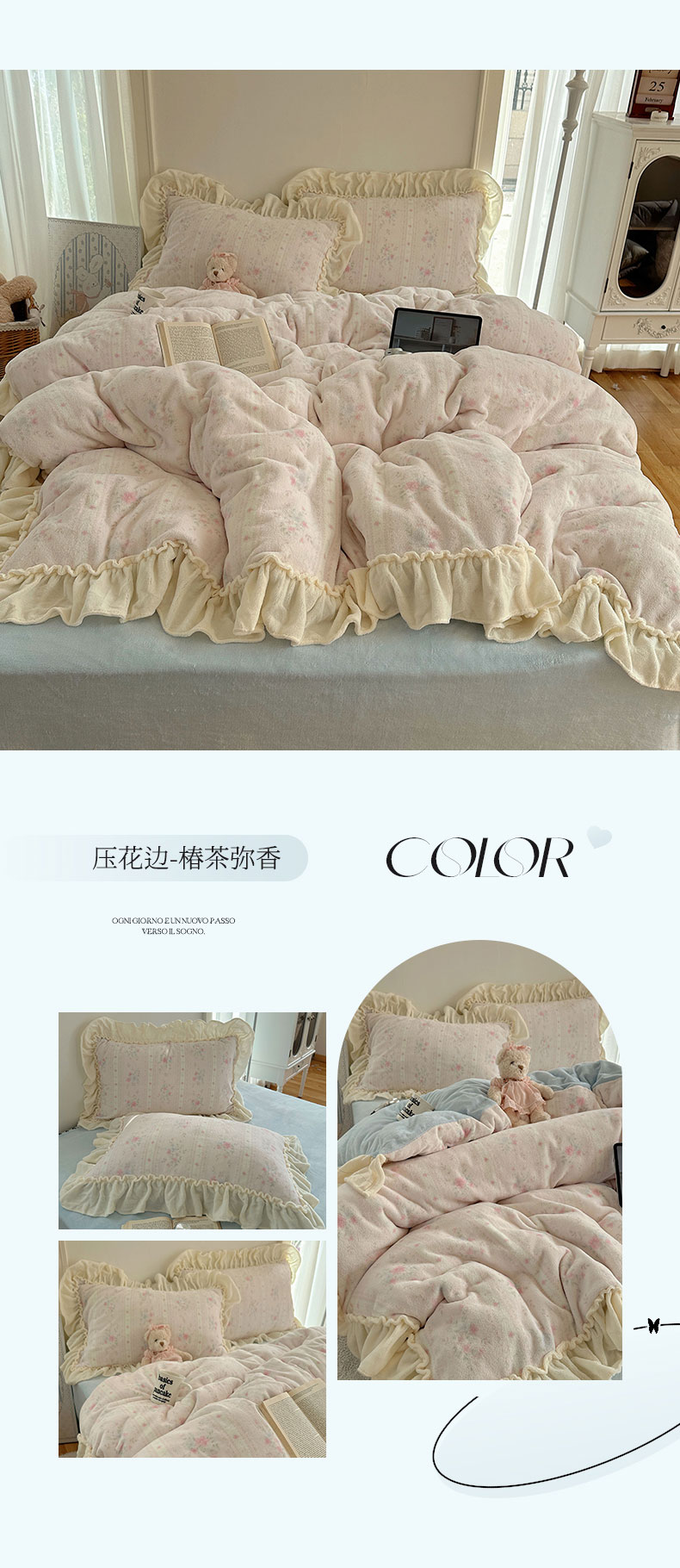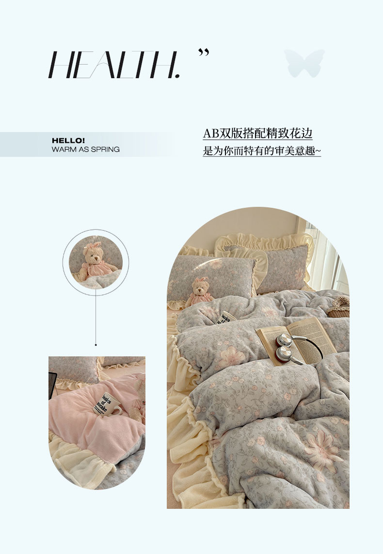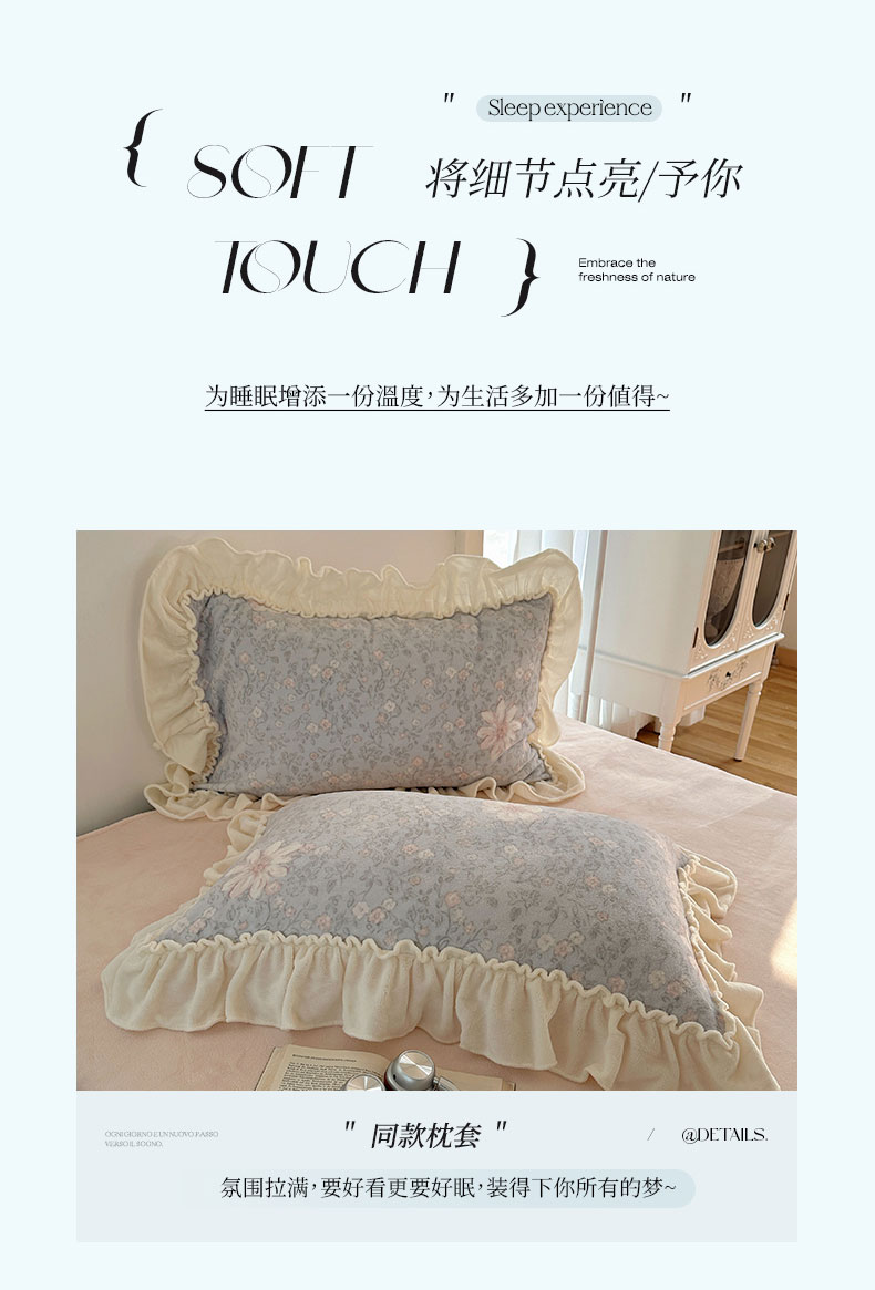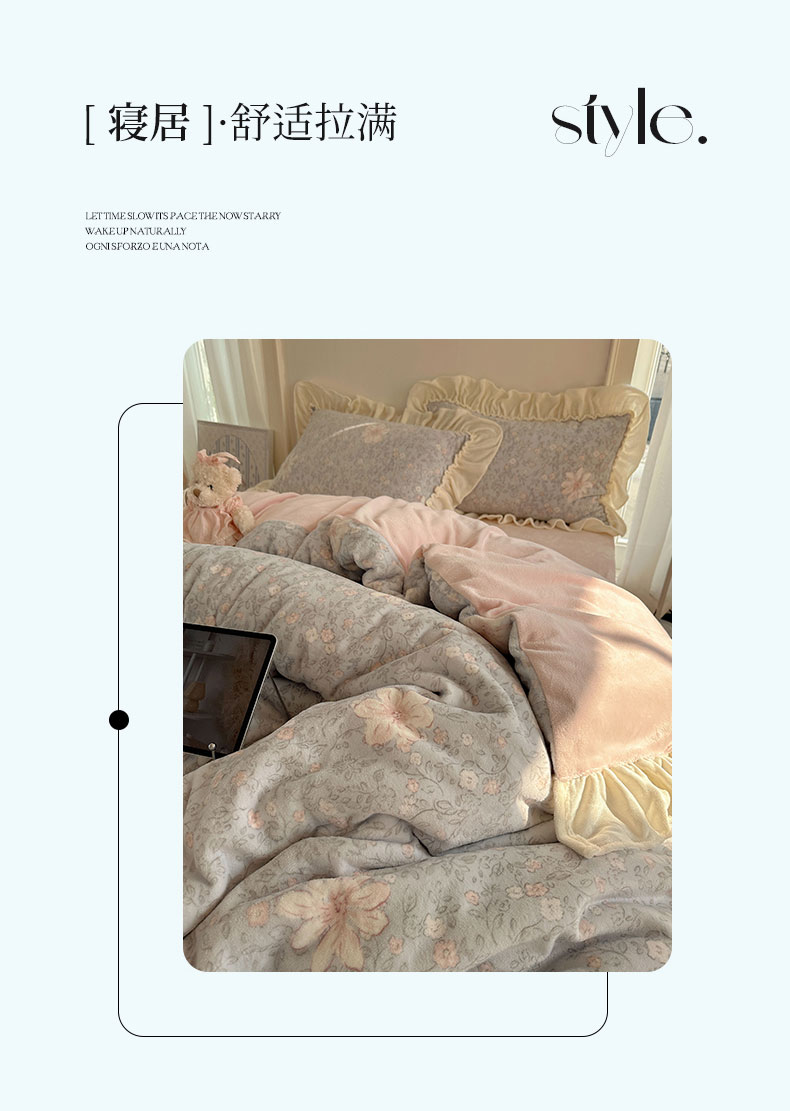 当前位置: 91家纺网 > 商品网购 > 床品套件 > 四件套 > 牛奶绒四件套 > 六巷胡同 2025新款韩系博主慵懒风小碎花A类牛奶绒花边款四件套 压花边-秋寻花鉴