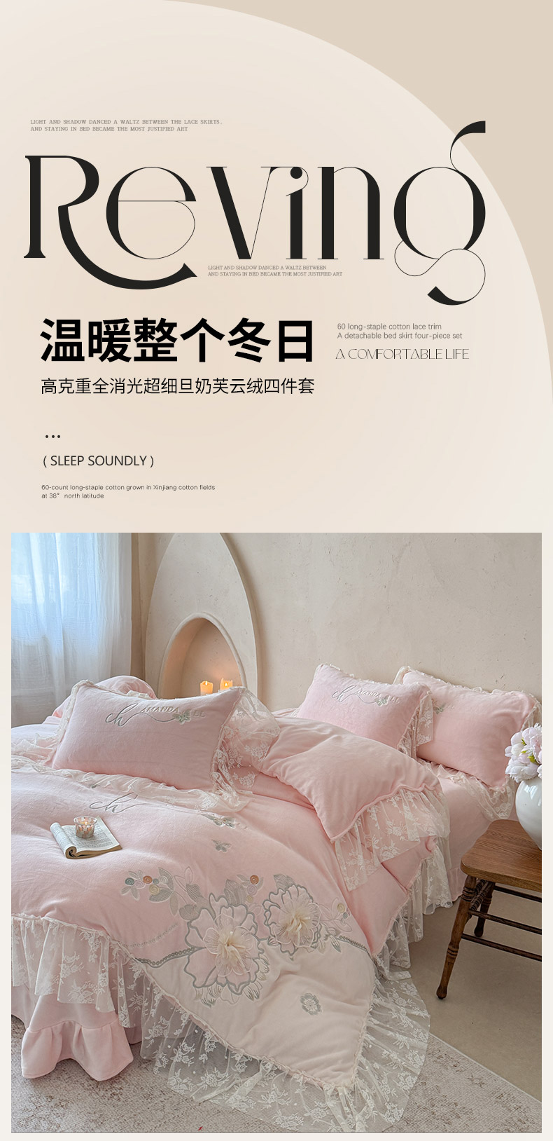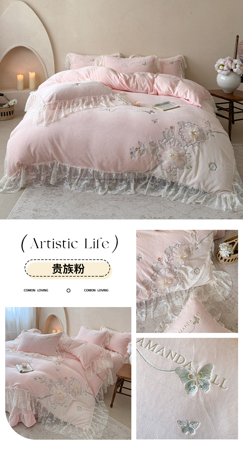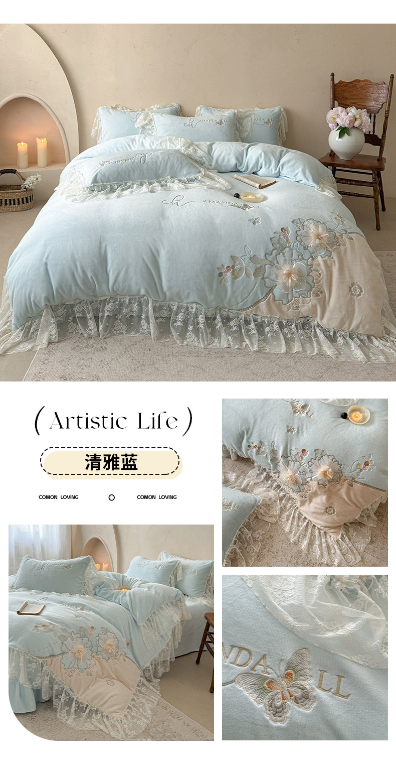 商品名称:(总)可以家居 2025新款高克重全消光超细旦奶芙云绒四件套-玛利亚系列-莱卡芙