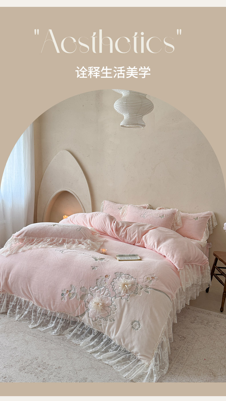 (总)可以家居 2025新款高克重全消光超细旦奶芙云绒四件套-玛利亚系列-莱卡芙