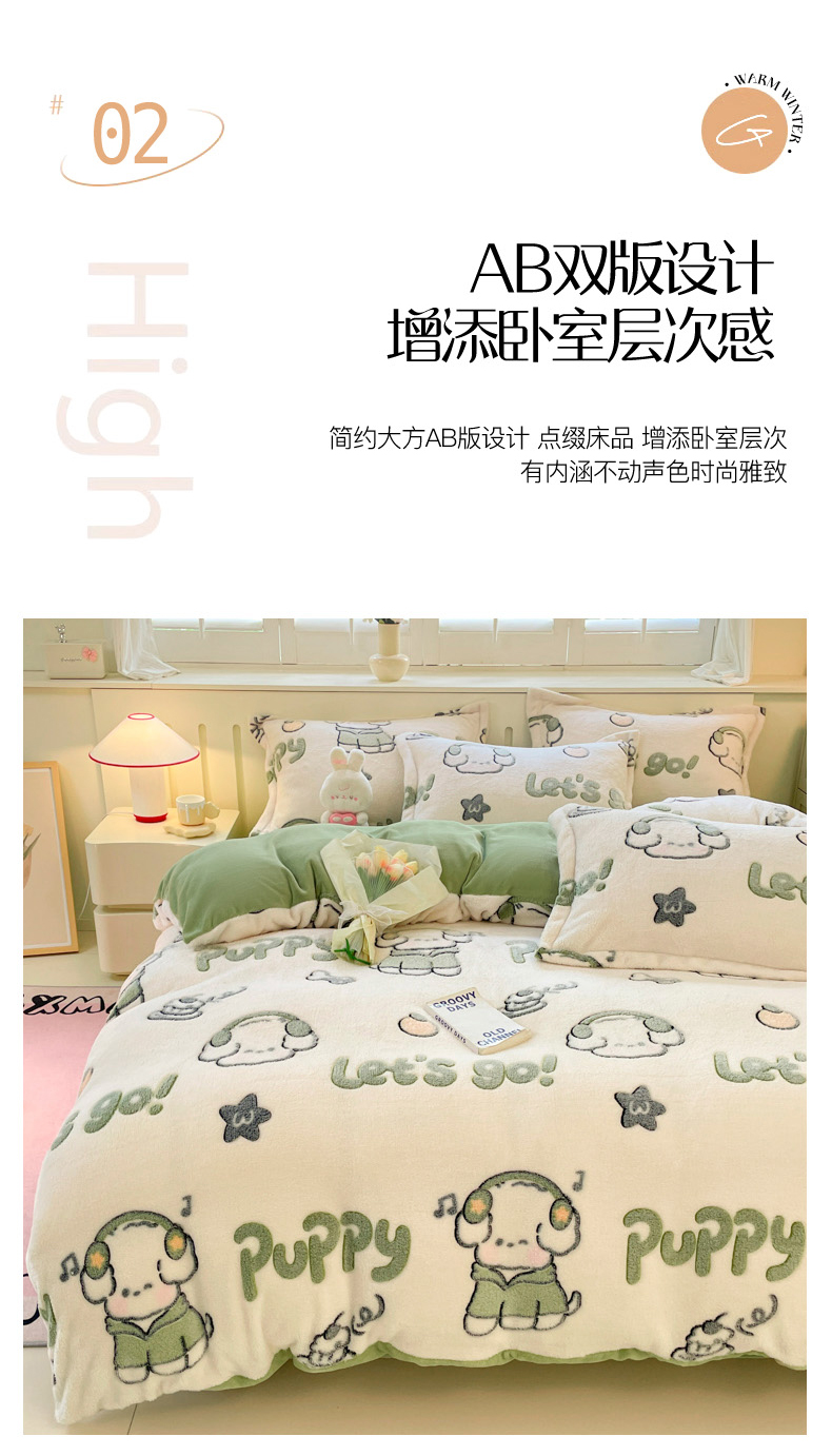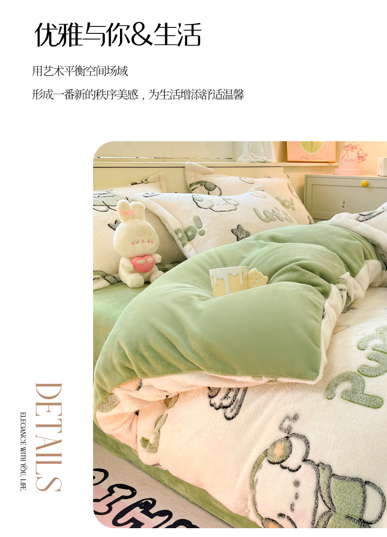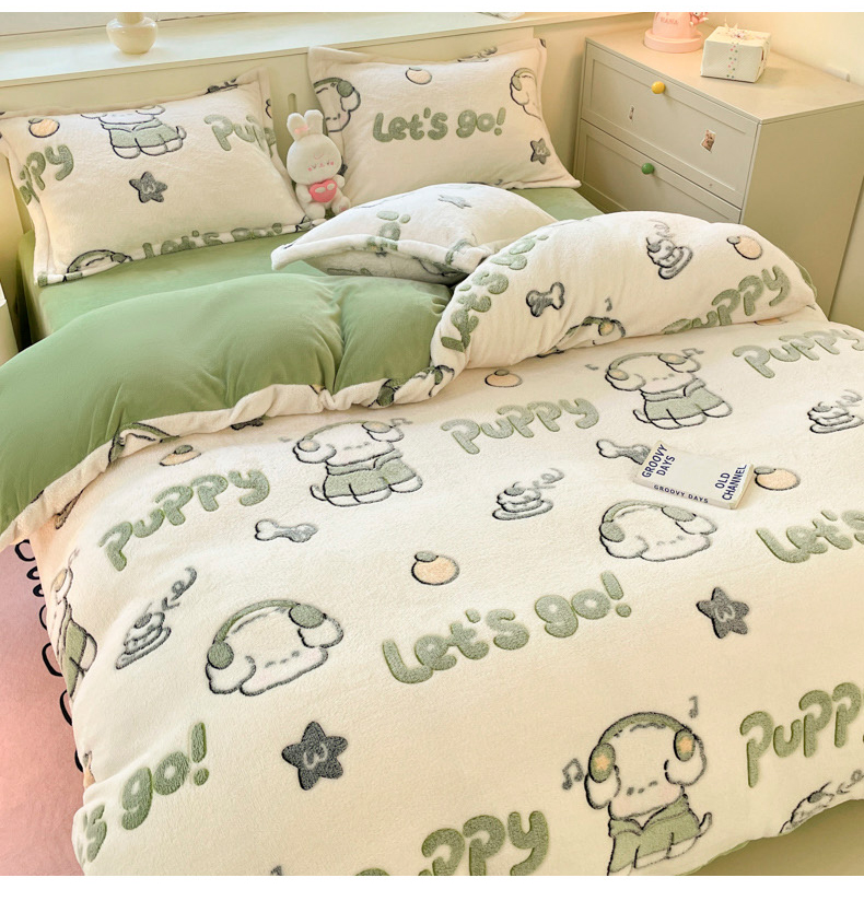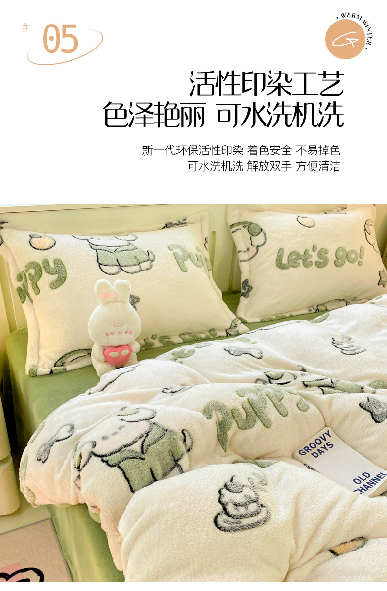 当前位置: 91家纺网 > 商品网购 > 床品套件 > 四件套 > 牛奶绒四件套 > 沐慕 2025新款A类200g加厚雪花绒180g牛奶绒四件套 字母萌宠