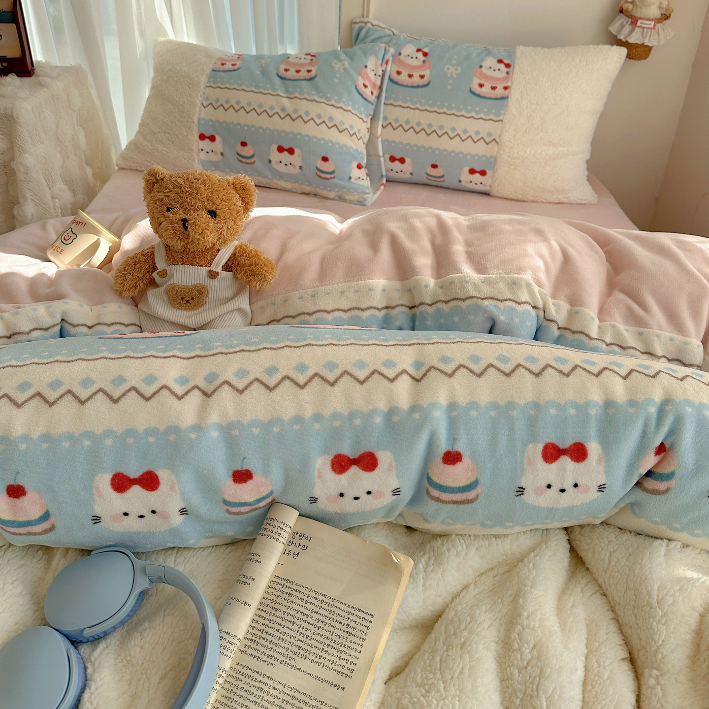 当前位置: 91家纺网 > 商品网购 > 床品套件 > 四件套 > 牛奶绒四件套 > 顾里家纺 2025新款ins韩风甜感羊羔拼接牛奶绒少女系四件套 丝带碎花猫咪