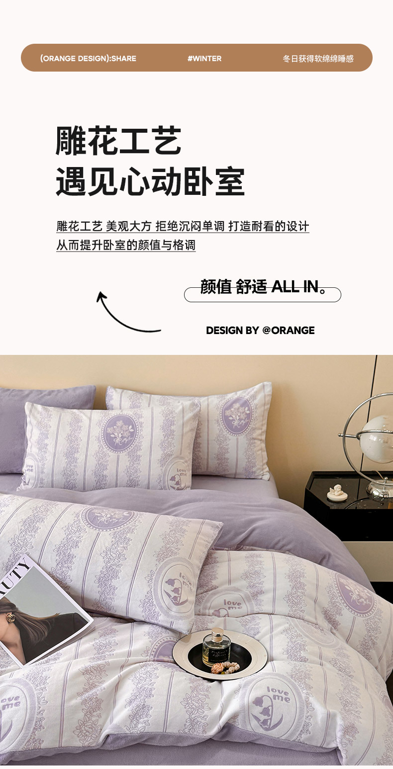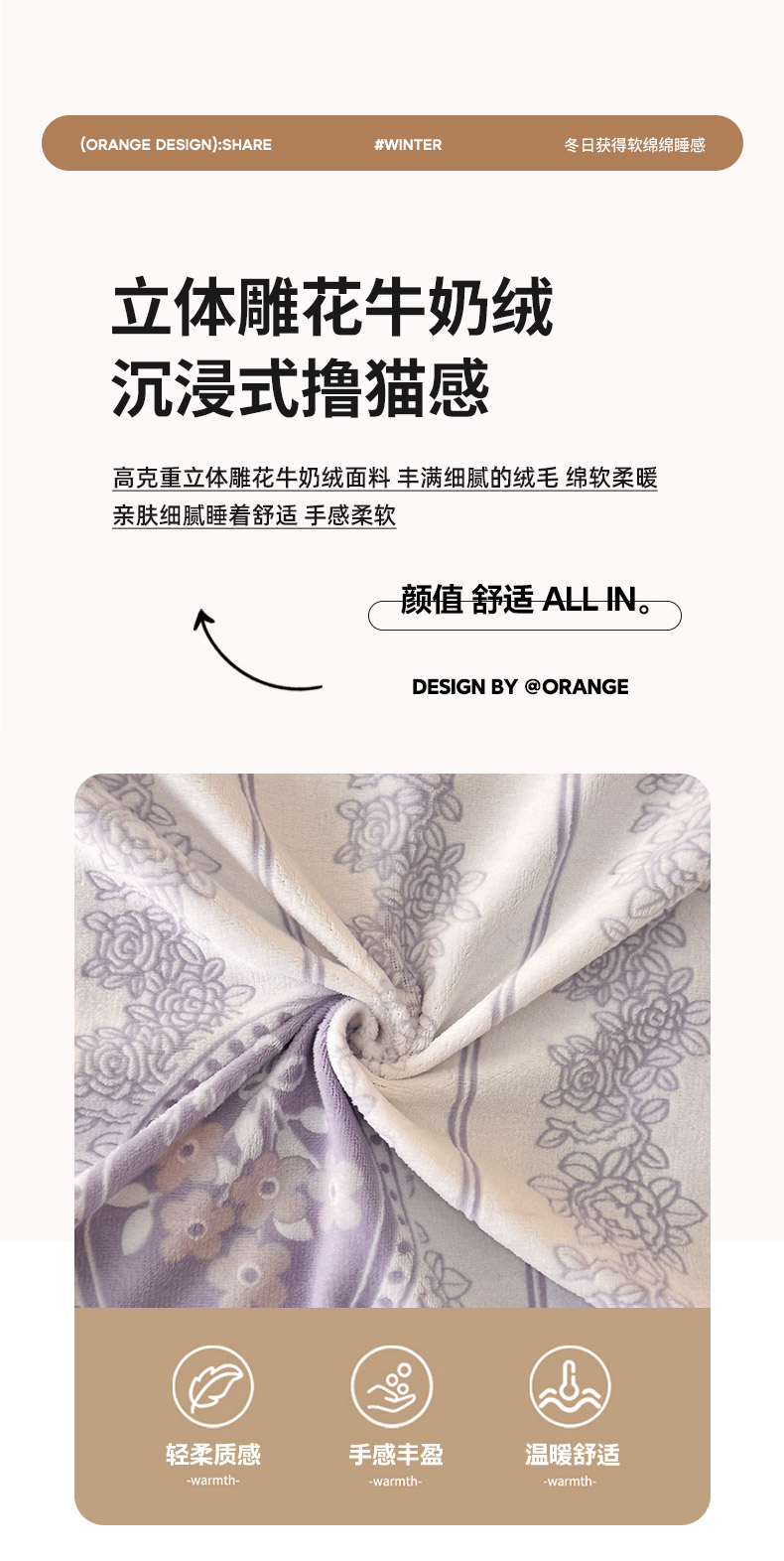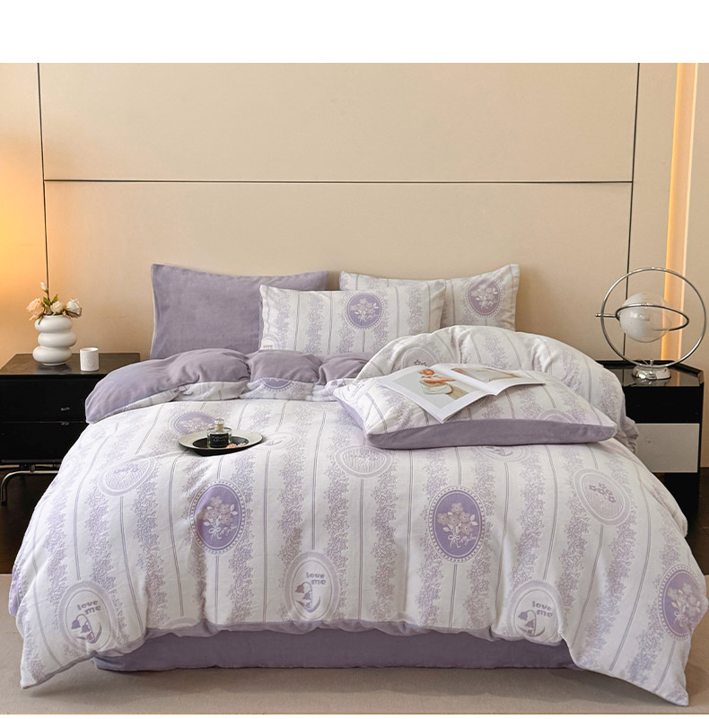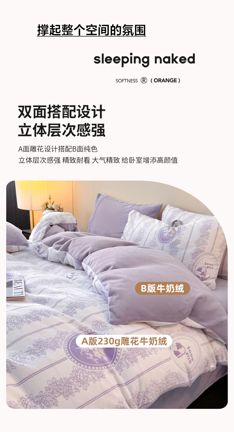 商品名称:吾秀家居 2025新款立体雕花牛奶绒四件套- 柔美系列 米娅紫
