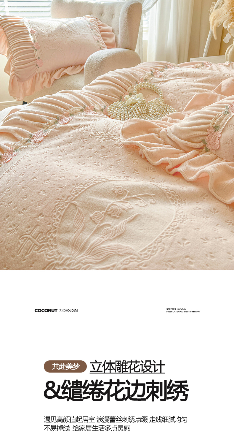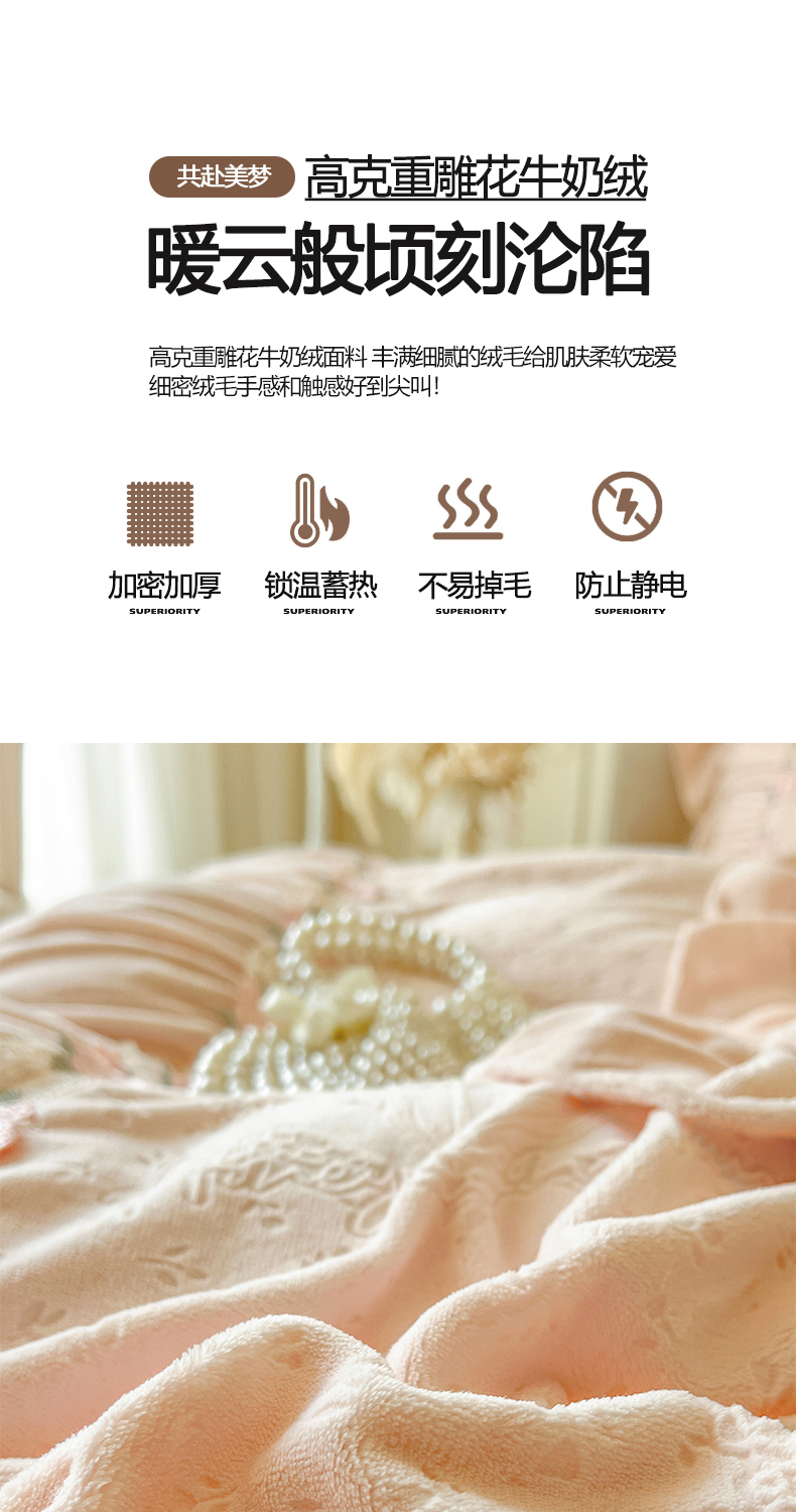 (总)好儿喜家纺 2025新款雕花牛奶绒床盖四件套-瑞享系列,瑞享-奶咖,瑞享-浅粉,瑞享-浅绿,瑞享-浅紫
