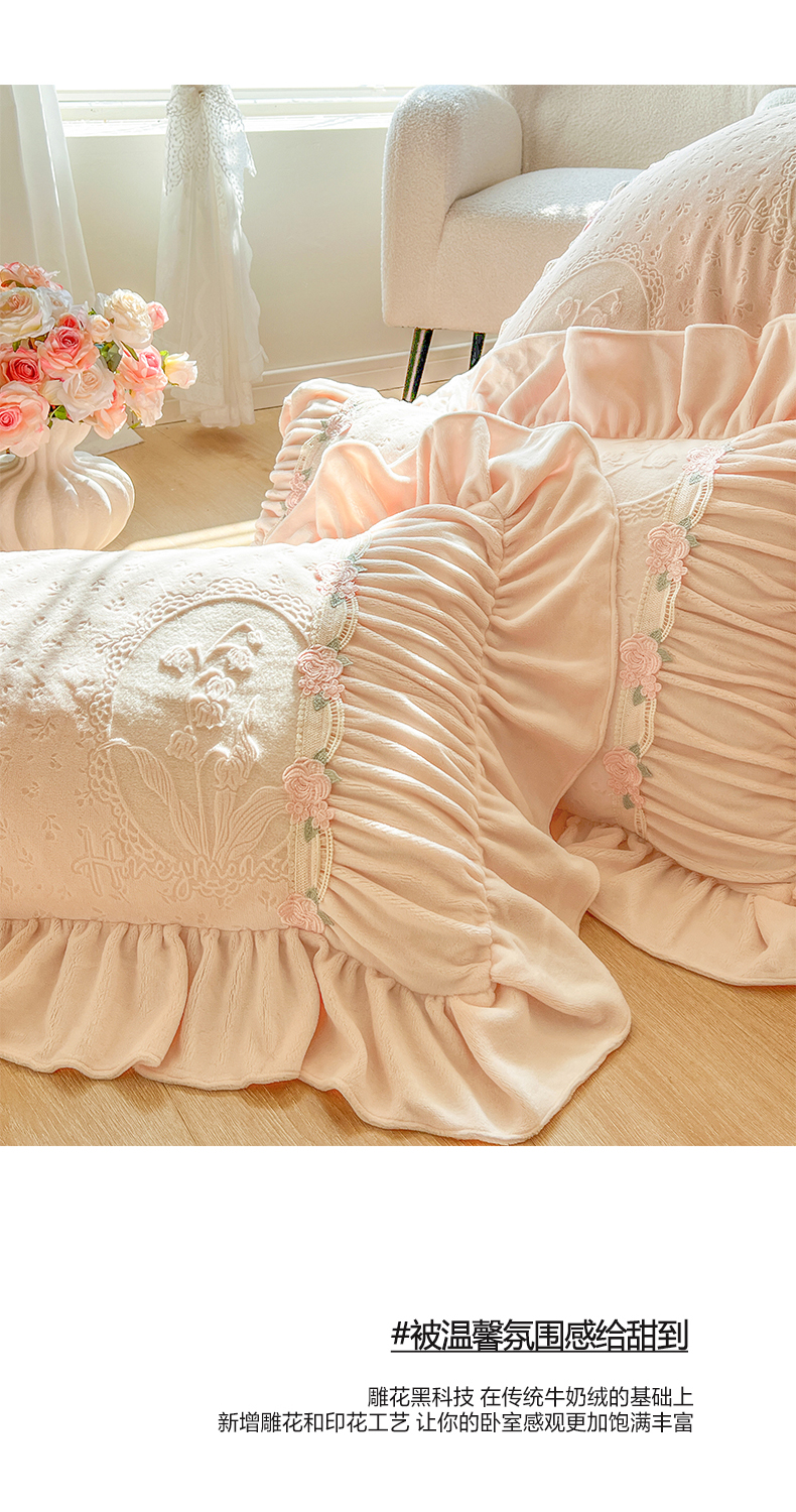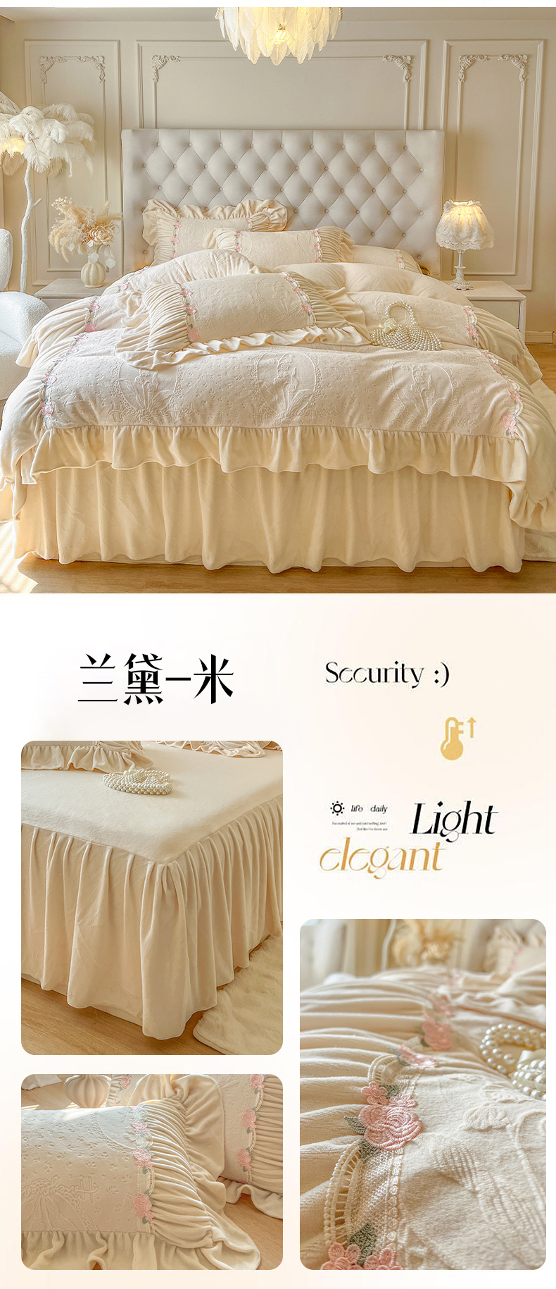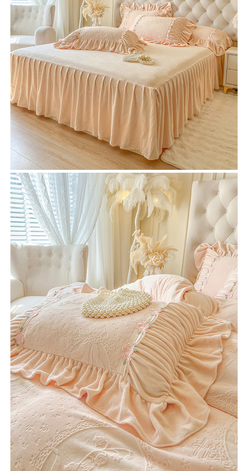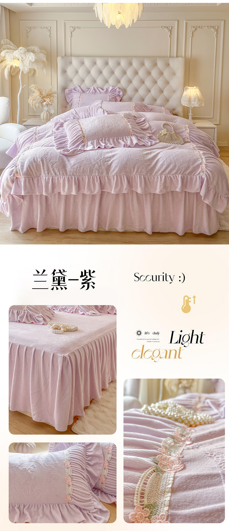 (总)好儿喜家纺 2025新款法式雕花牛奶绒四件套床裙款-兰黛系列