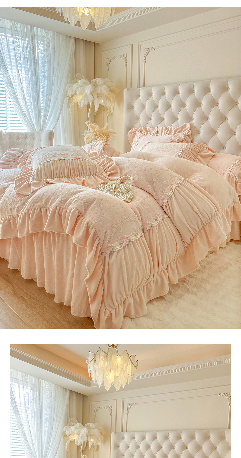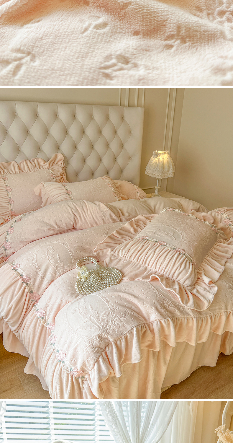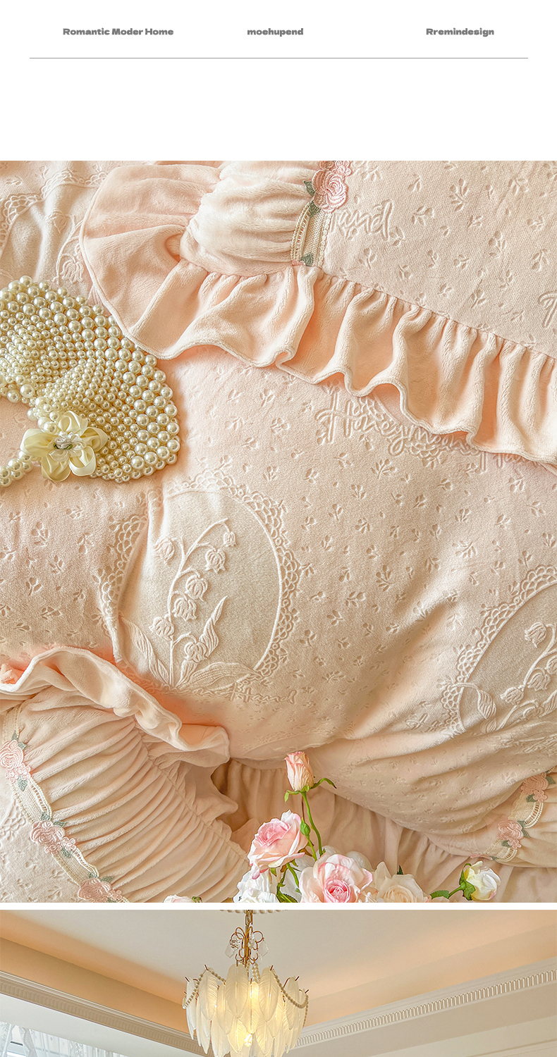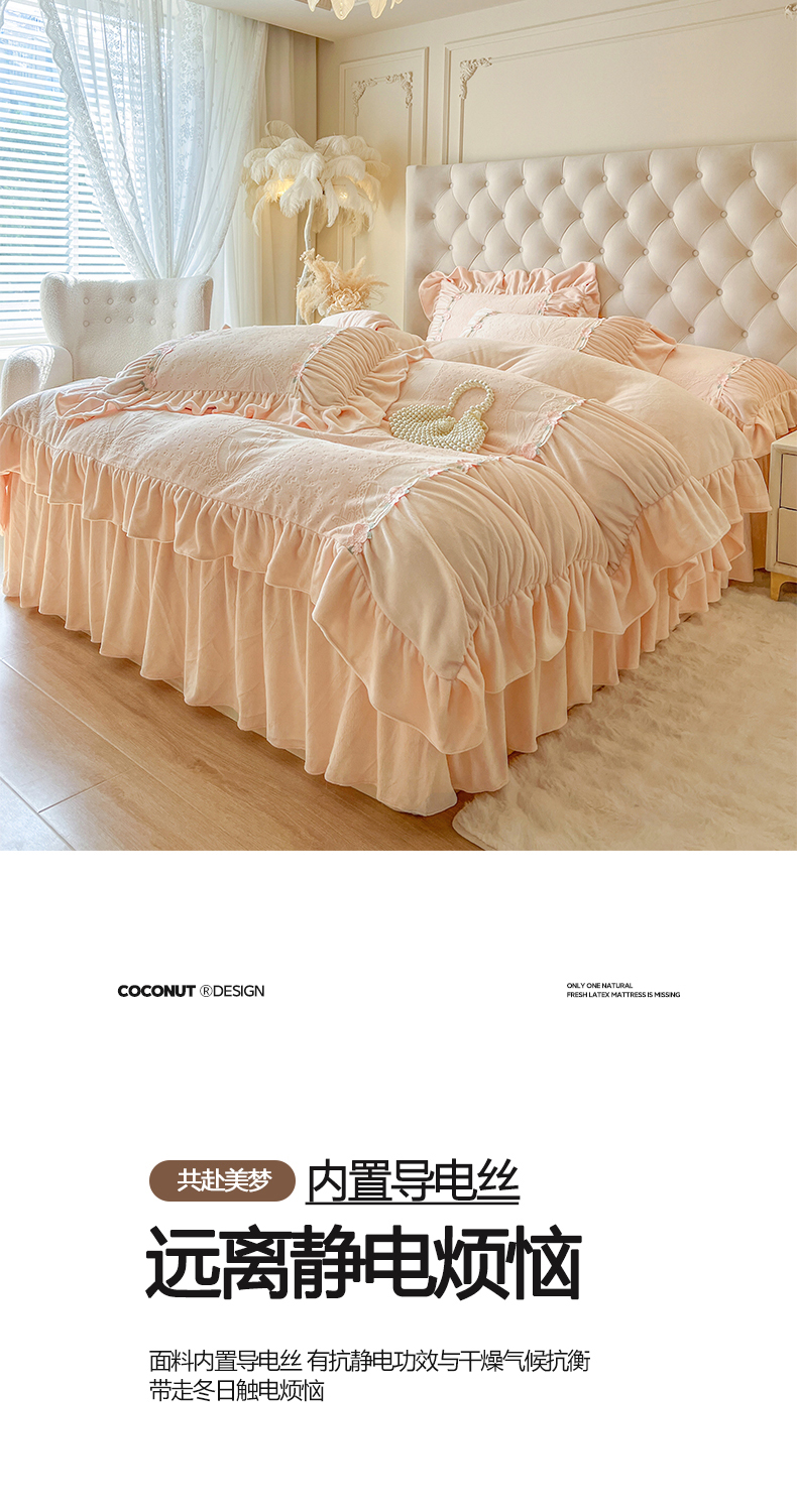 (总)好儿喜家纺 2025新款法式雕花牛奶绒四件套床裙款-兰黛系列