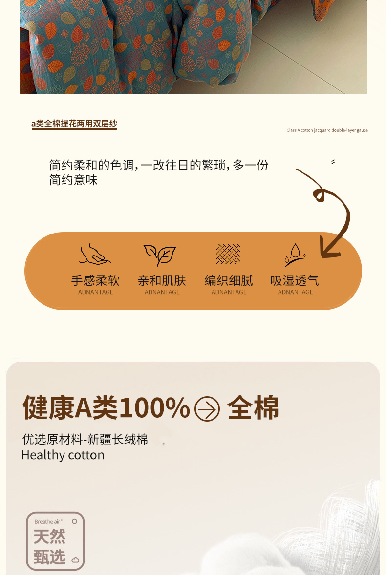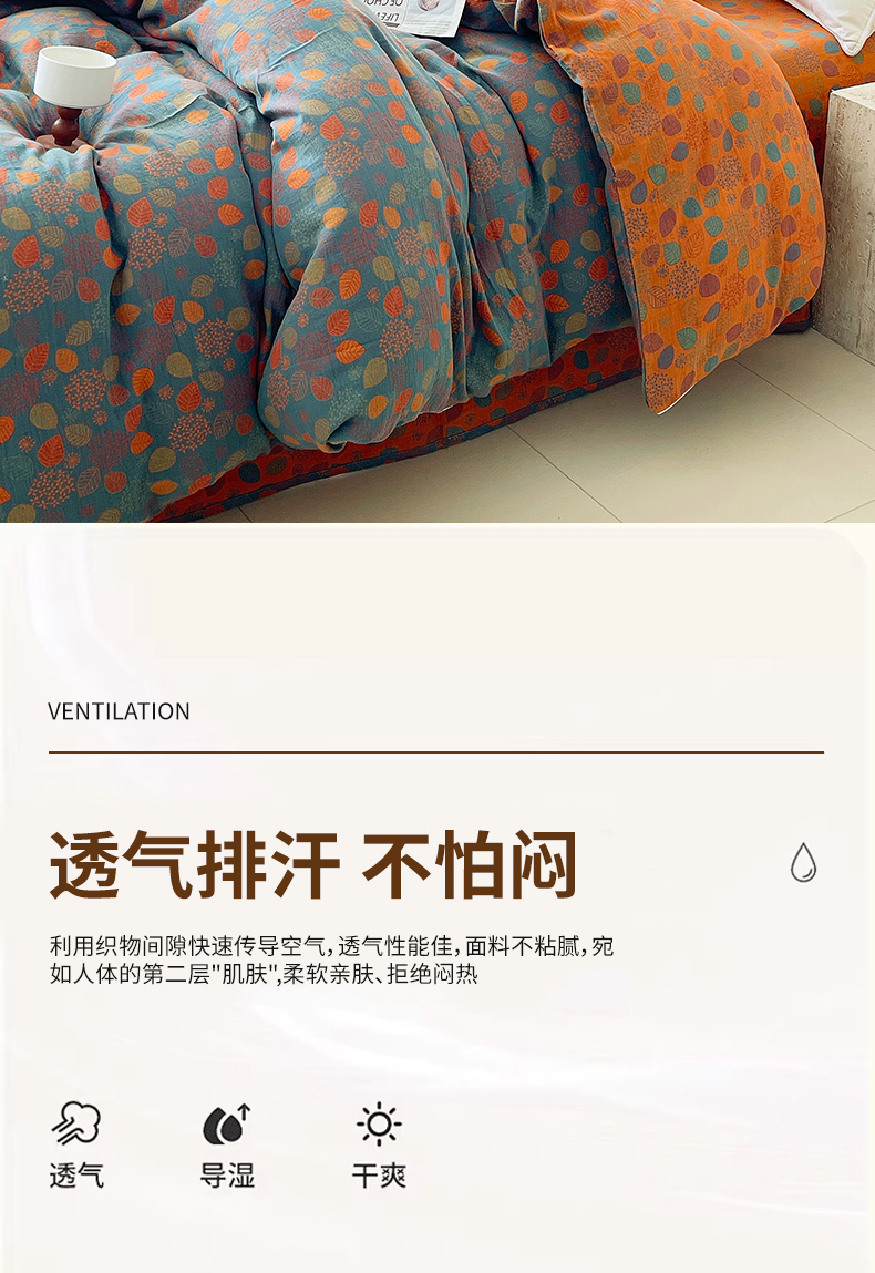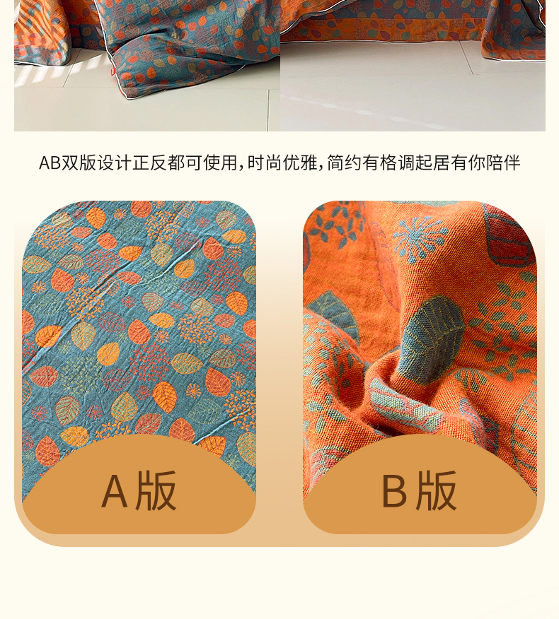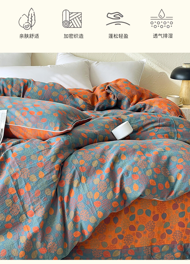 商品名称:春皖家纺 2026春夏新款(正反两用)A类提花双层纱单被套 映阳-蓝黄
