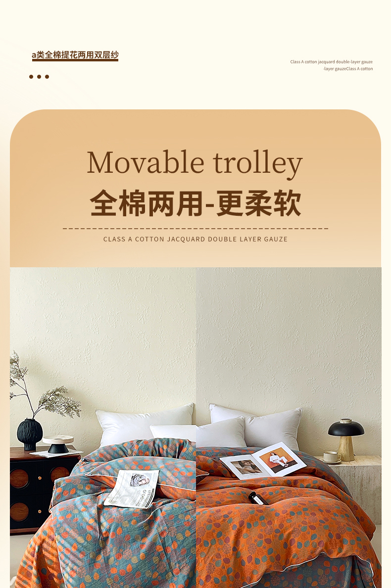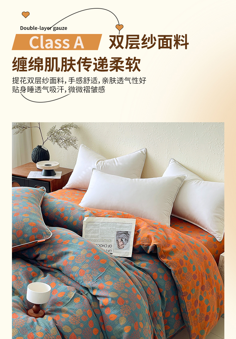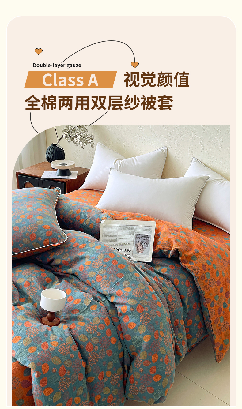 商品名称:春皖家纺 2026春夏新款(正反两用)A类提花双层纱单被套 映阳-蓝黄