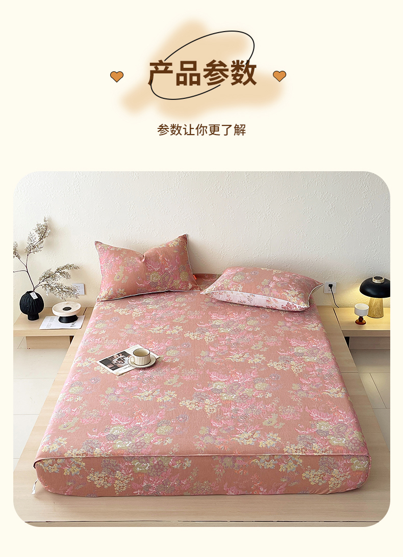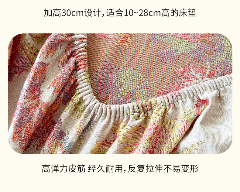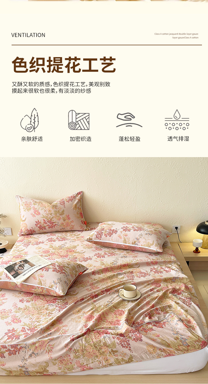商品名称:春皖家纺 2026春夏新款(正反两用)A类提花双层纱单床笠 霞沫