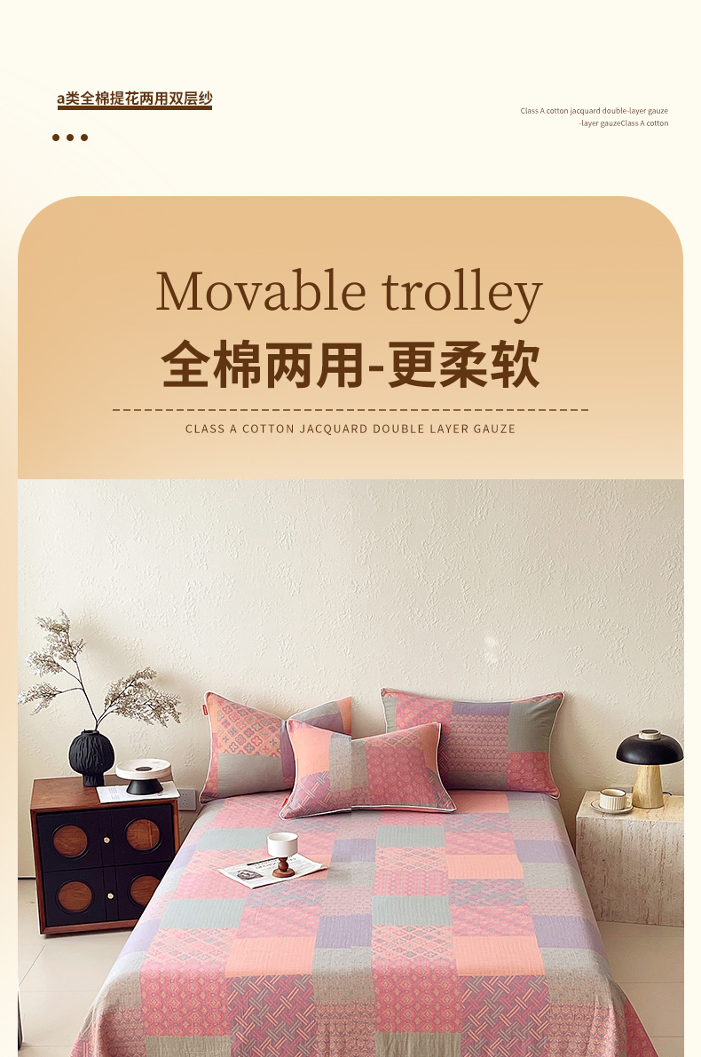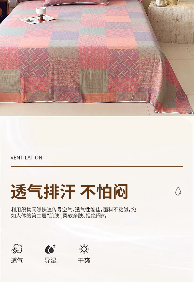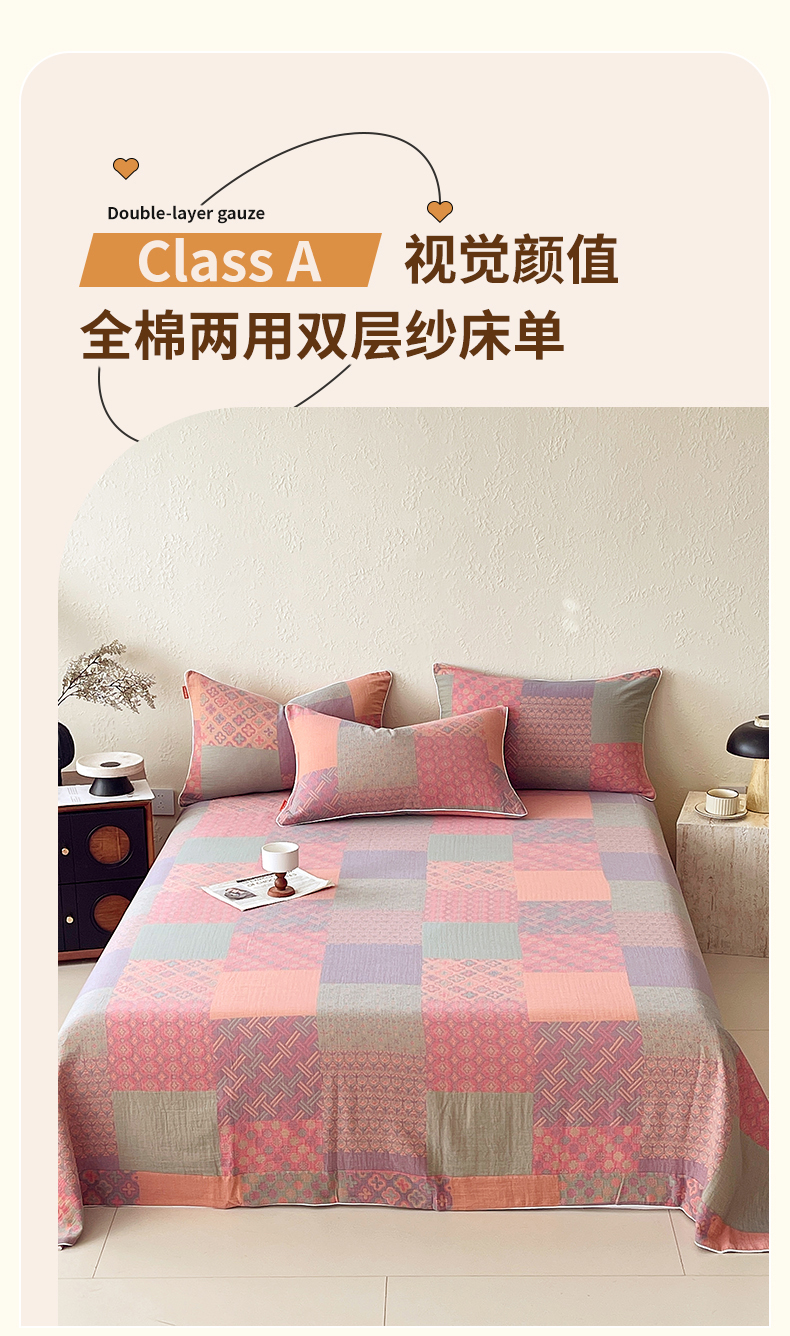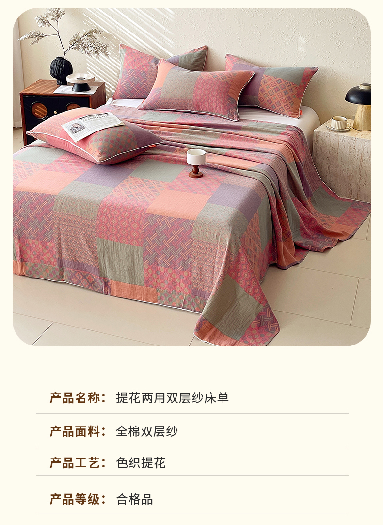 商品名称:春皖家纺 2026春夏新款(正反两用)A类提花双层纱单床单 思菱-粉玉