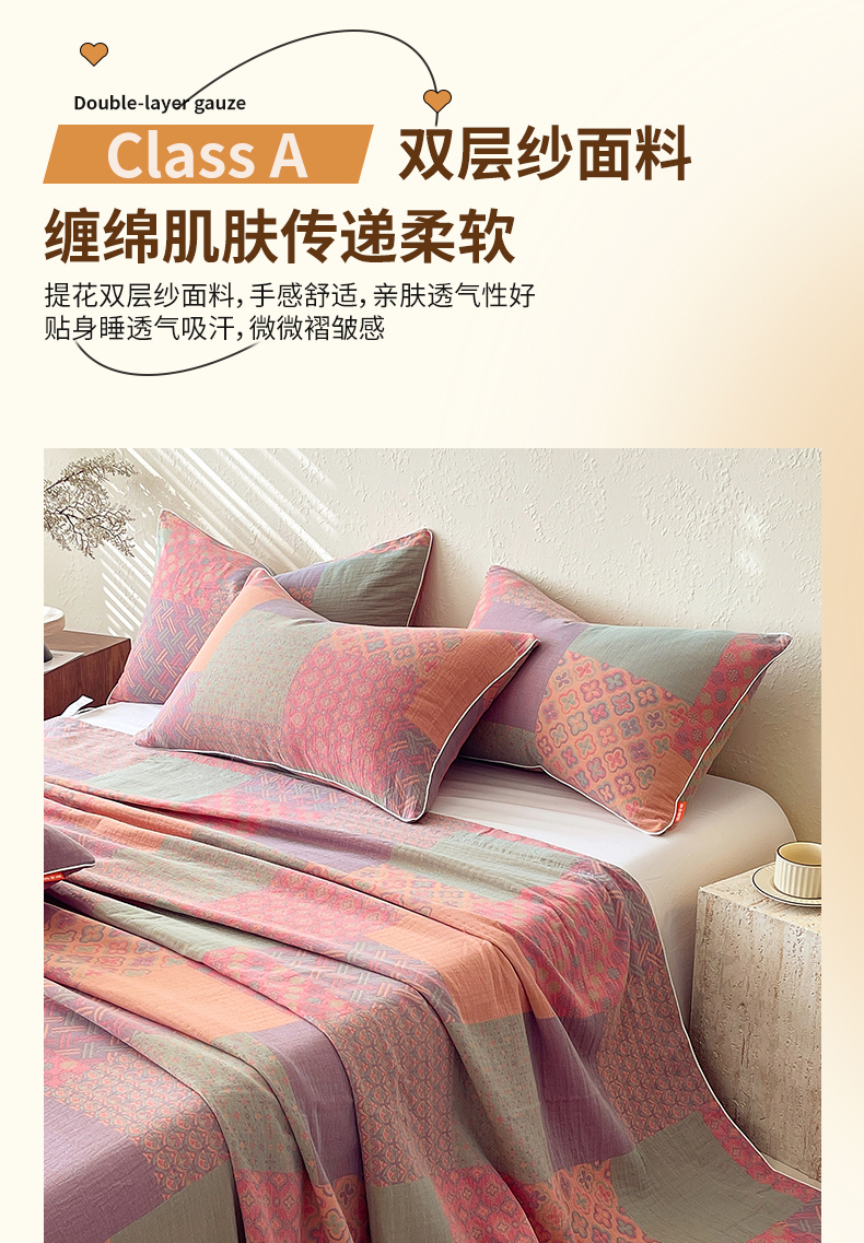 春皖家纺 2026春夏新款(正反两用)A类提花双层纱单床单 思菱-粉玉