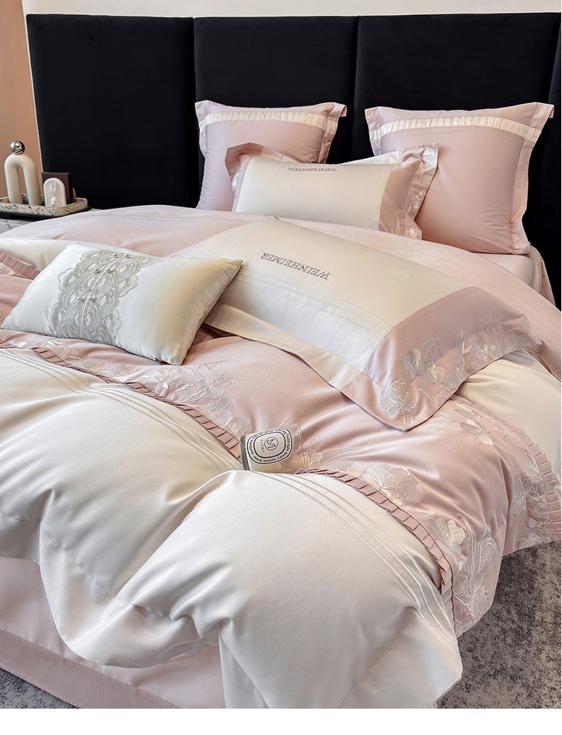 (总)祺瑞佳家纺 2026新款100%双面纯棉法式刺绣花四件套全棉四季款床单床笠-恬蜜光年 场景二