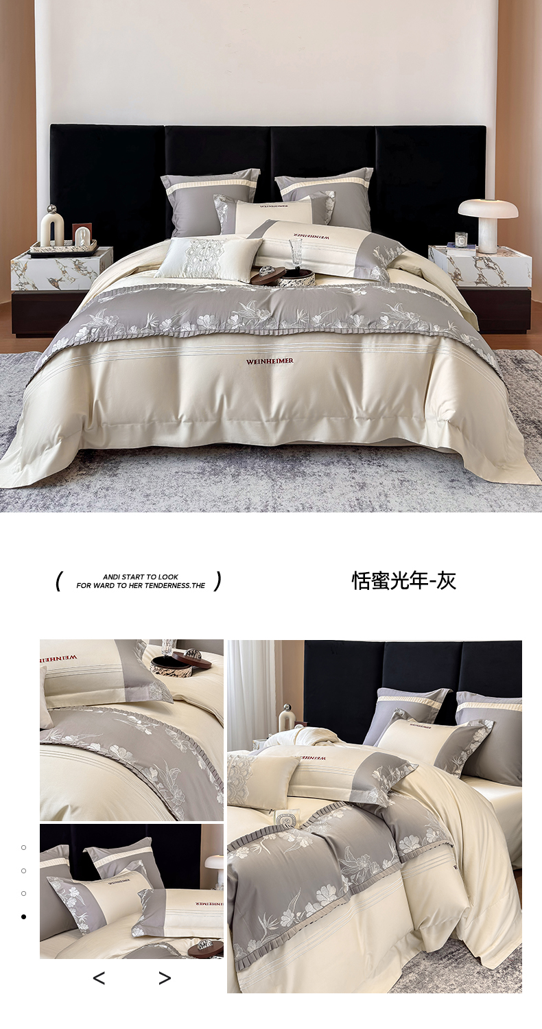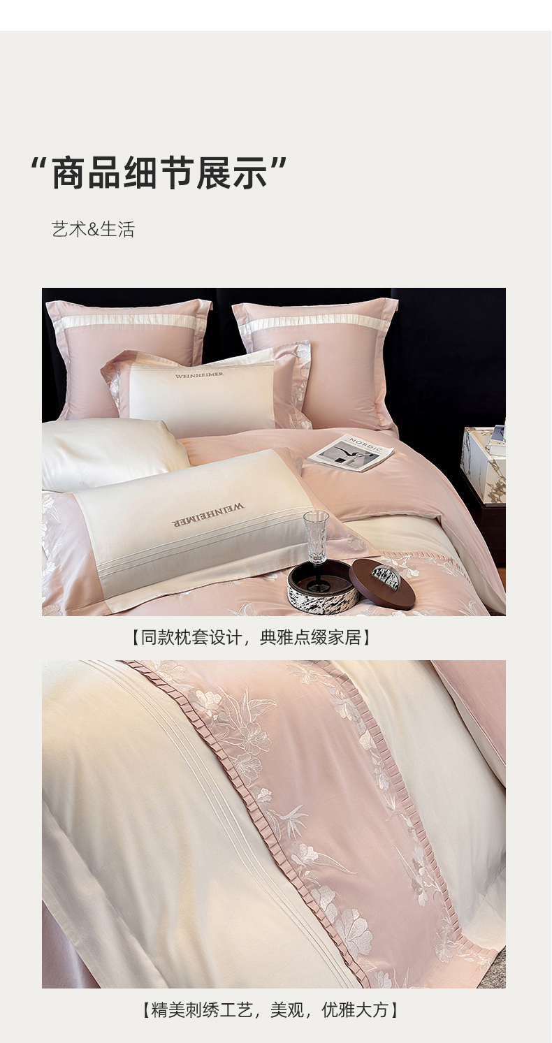 (总)祺瑞佳家纺 2026新款100%双面纯棉法式刺绣花四件套全棉四季款床单床笠-恬蜜光年场景一,恬蜜光年-粉,恬蜜光年-灰