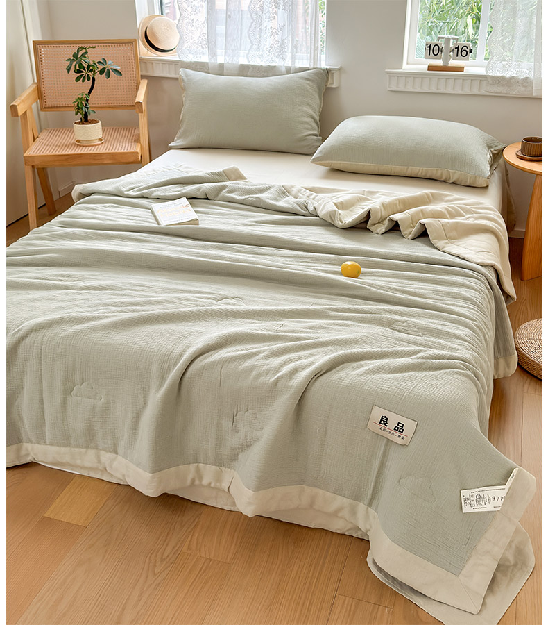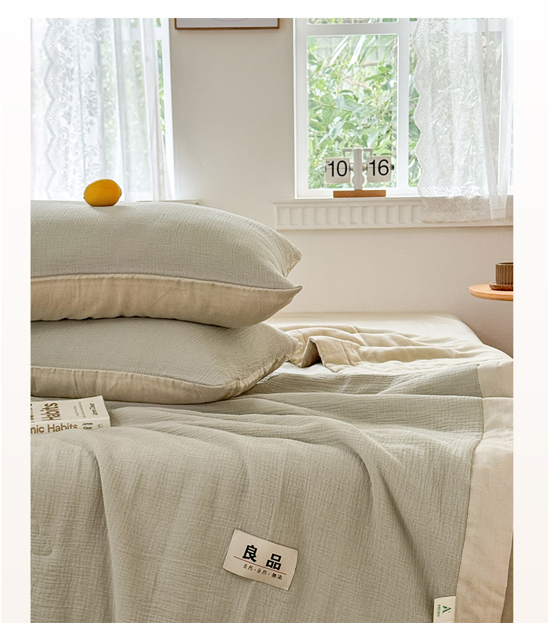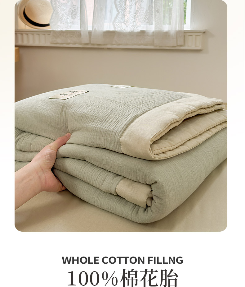 • 91家纺网 家纺一手货源 找家纺 雯雨家纺 2026新款里外全棉皱皱纱棉花夏被夏凉被空调被 全棉皱皱纱-豆绿