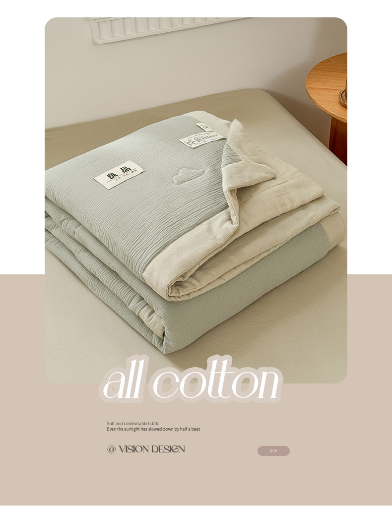 当前位置: 91家纺网 > 商品网购 > 被子 > 夏被 > 雯雨家纺 2026新款里外全棉皱皱纱棉花夏被夏凉被空调被 全棉皱皱纱-豆绿