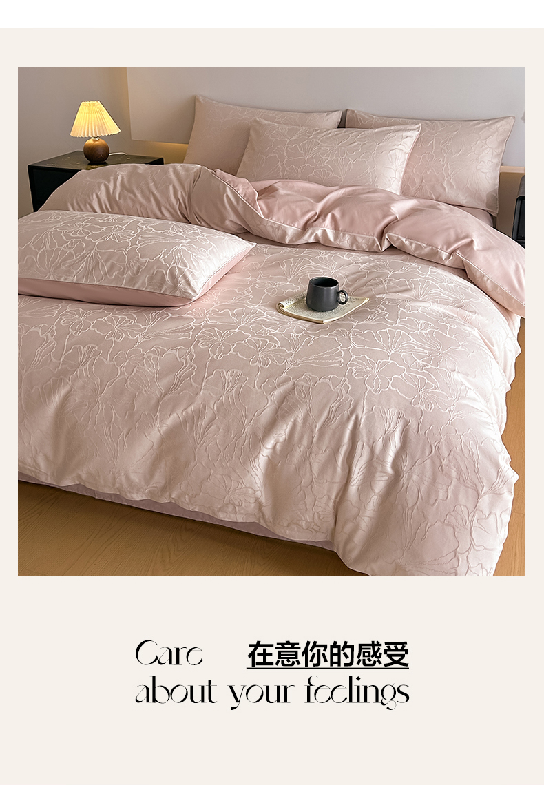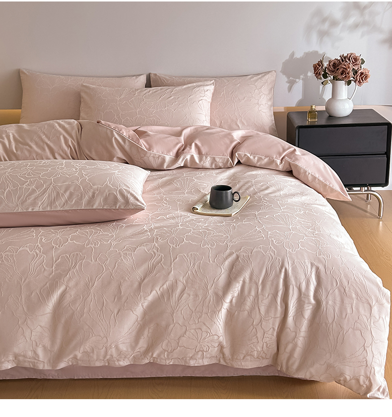 曼之夏 2026新款60支全棉水洗浮雕提花四件套 山涧雾-卡其粉