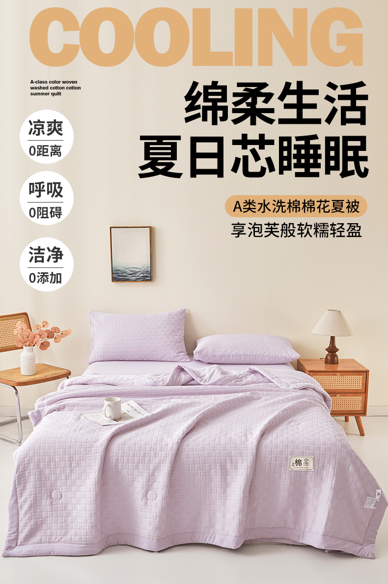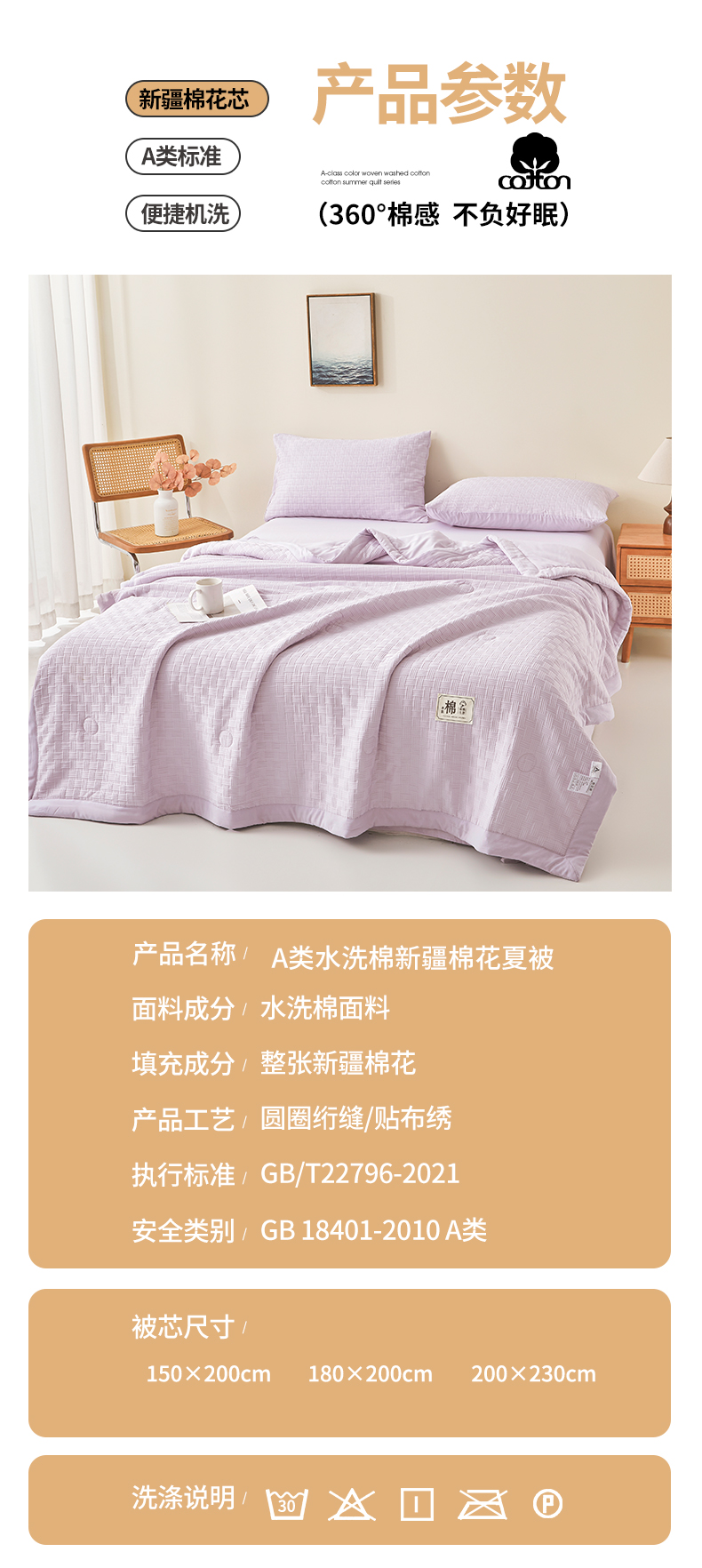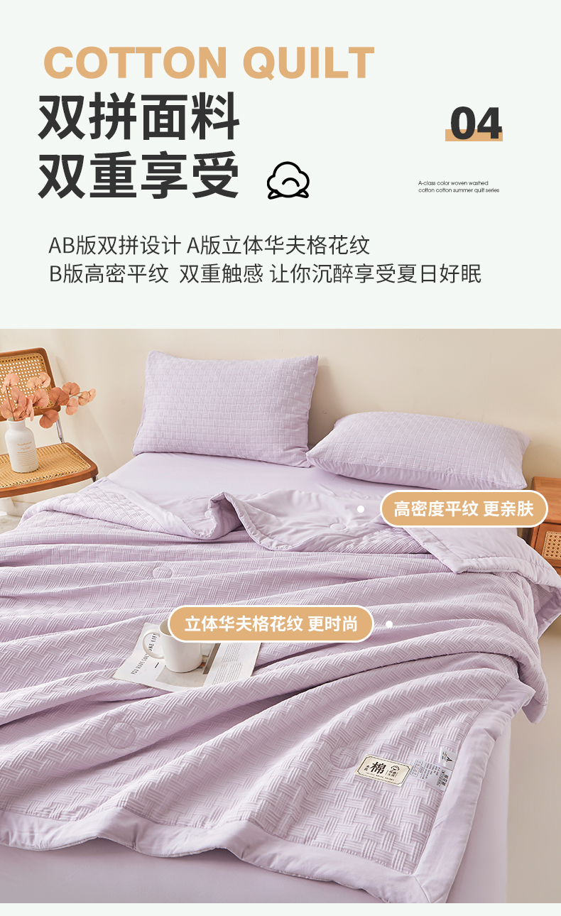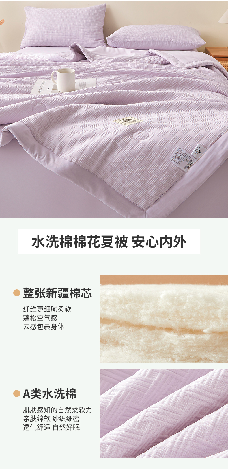 商品名称:好睡棉 2026新款华夫格双拼夏被夏凉被空调被新疆棉花被子 香芋紫