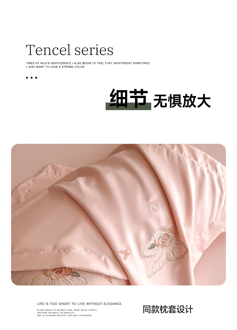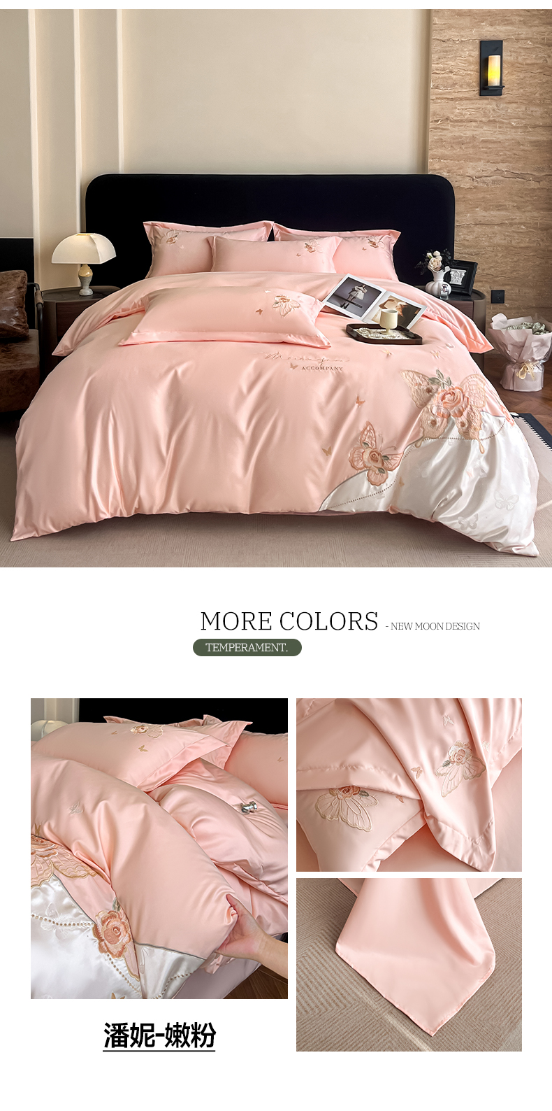 商品名称:金牛座家纺 2026新款细斜纹亮丝提花贴布绣重工刺绣四件套-潘妮系列 潘妮-嫩粉