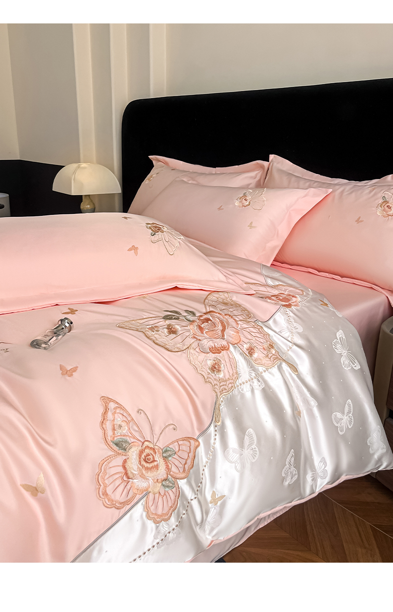 (总)金牛座家纺 2025新款加厚牛奶绒重工刺绣贴布绣四件套-蝶恋花,蝶恋花-嫩粉,蝶恋花-浅灰,蝶恋花-浅紫,蝶恋花-雾蓝,蝶恋花-杏色