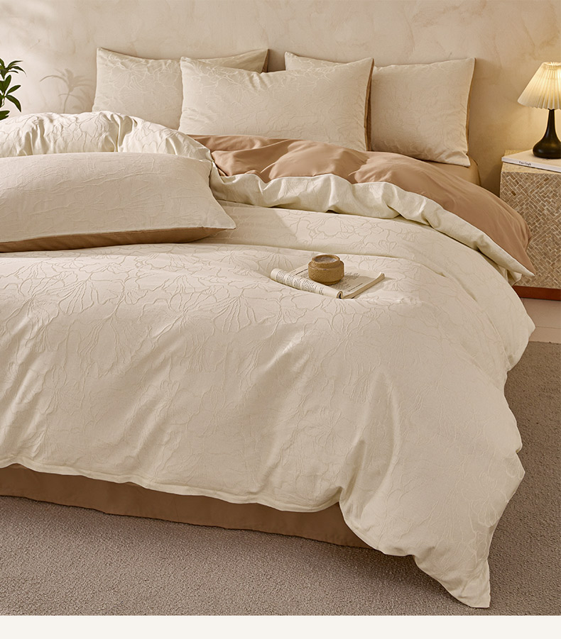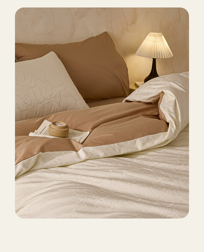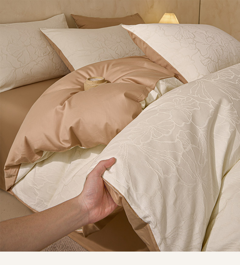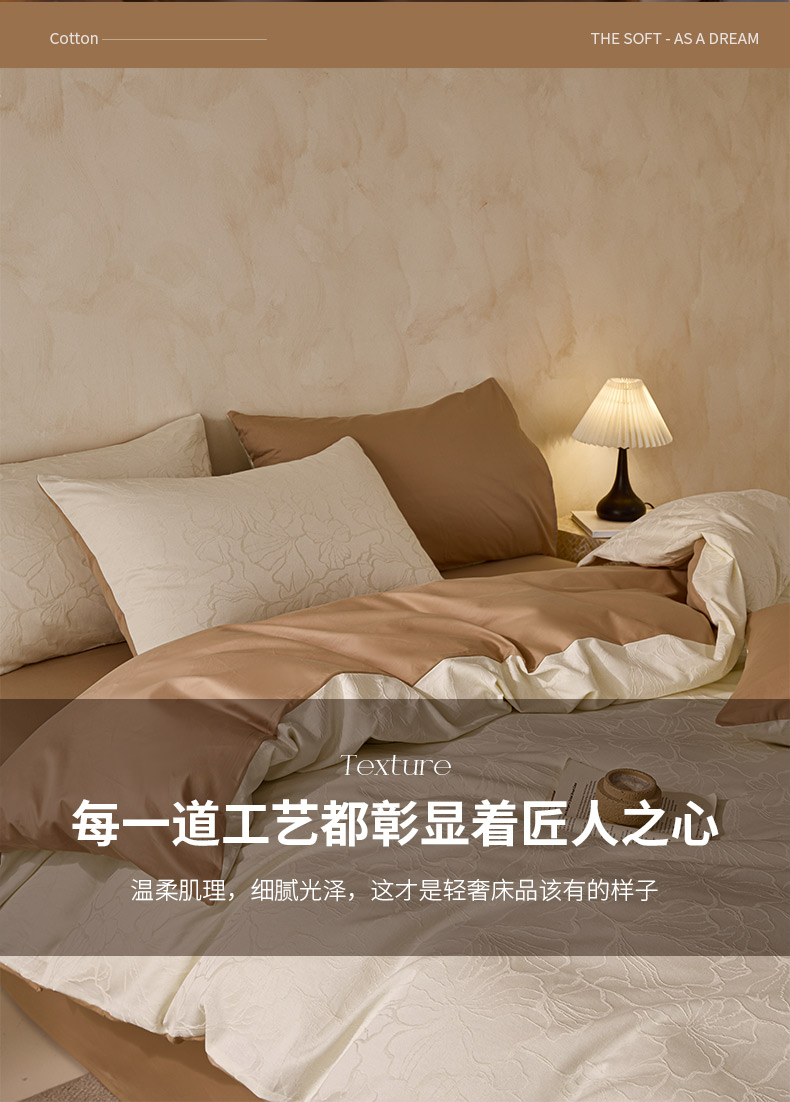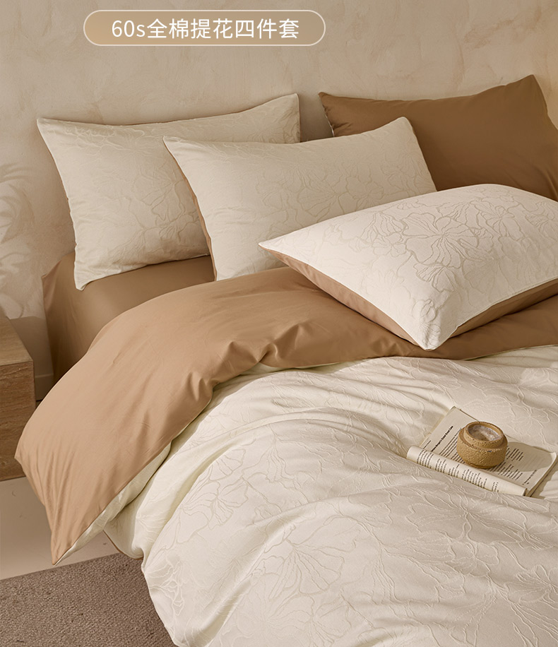 雯雨家纺 2026新款全棉60s全棉提花四件套 棕韵浮香