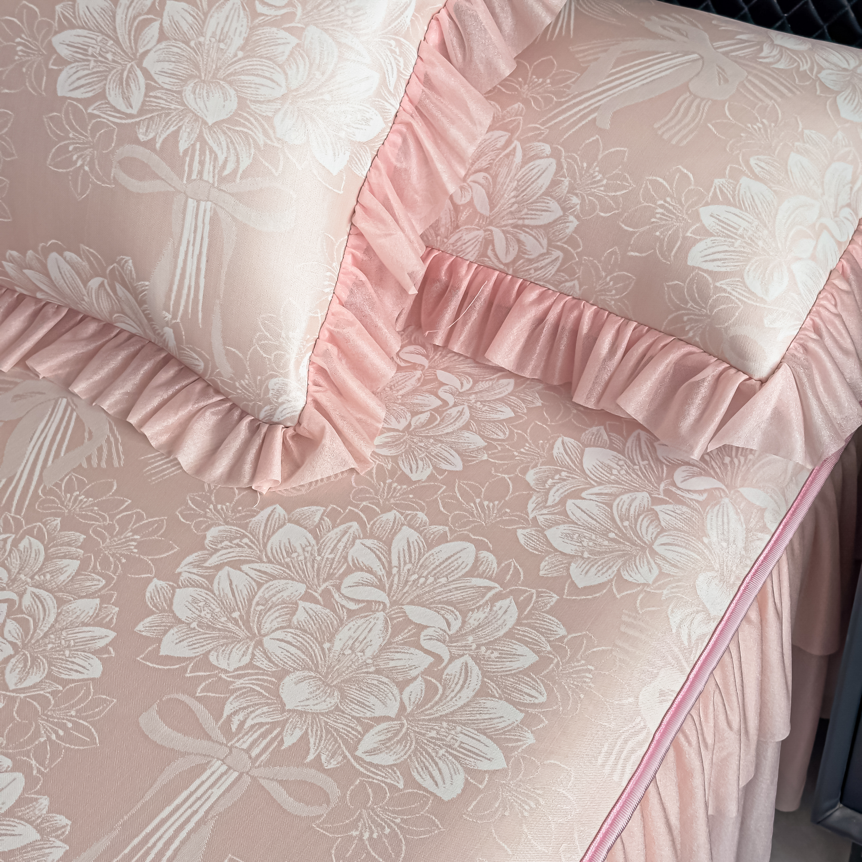 (总)家之硕家纺 2026春夏新款凉感提花床裙款凉席席子,百合捧花--粉,百合捧花--浅灰,百合捧花--深蓝,百合捧花--天蓝,蔷薇玫瑰--绿,蔷薇玫瑰--深灰,蔷薇玫瑰--深蓝,蔷薇玫瑰--天蓝