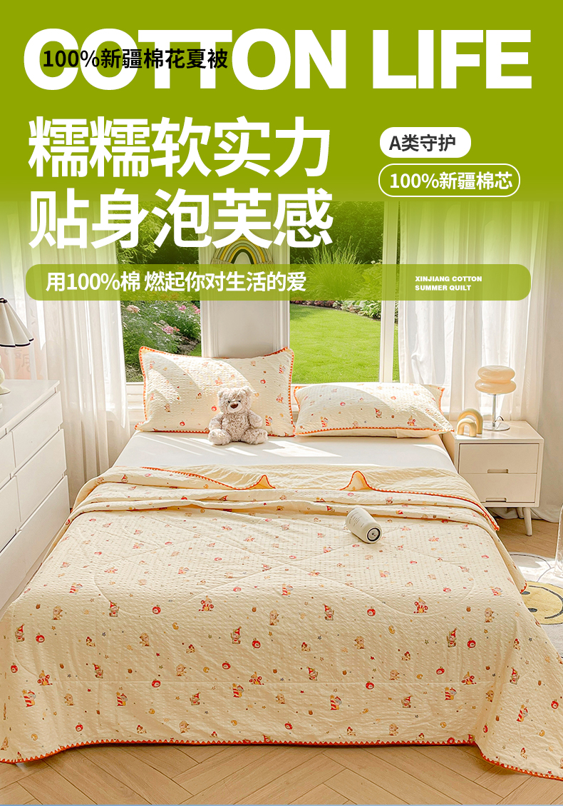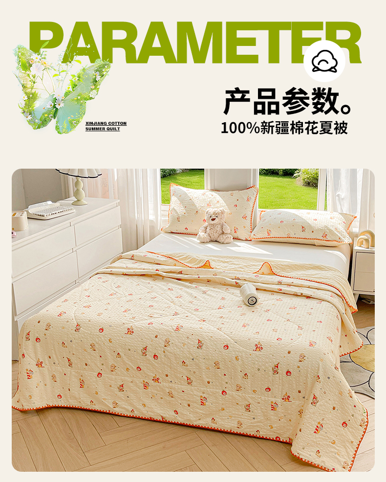 (总)米萝家居 2026新款100%棉花夏被四件套双层纱夏凉被空调被 被子被芯直播【风格二】,半夏,蝶舞,繁花似锦,蝴蝶结,花团小熊,灰韵花簇,锦上添花,快乐伙伴,马上有福