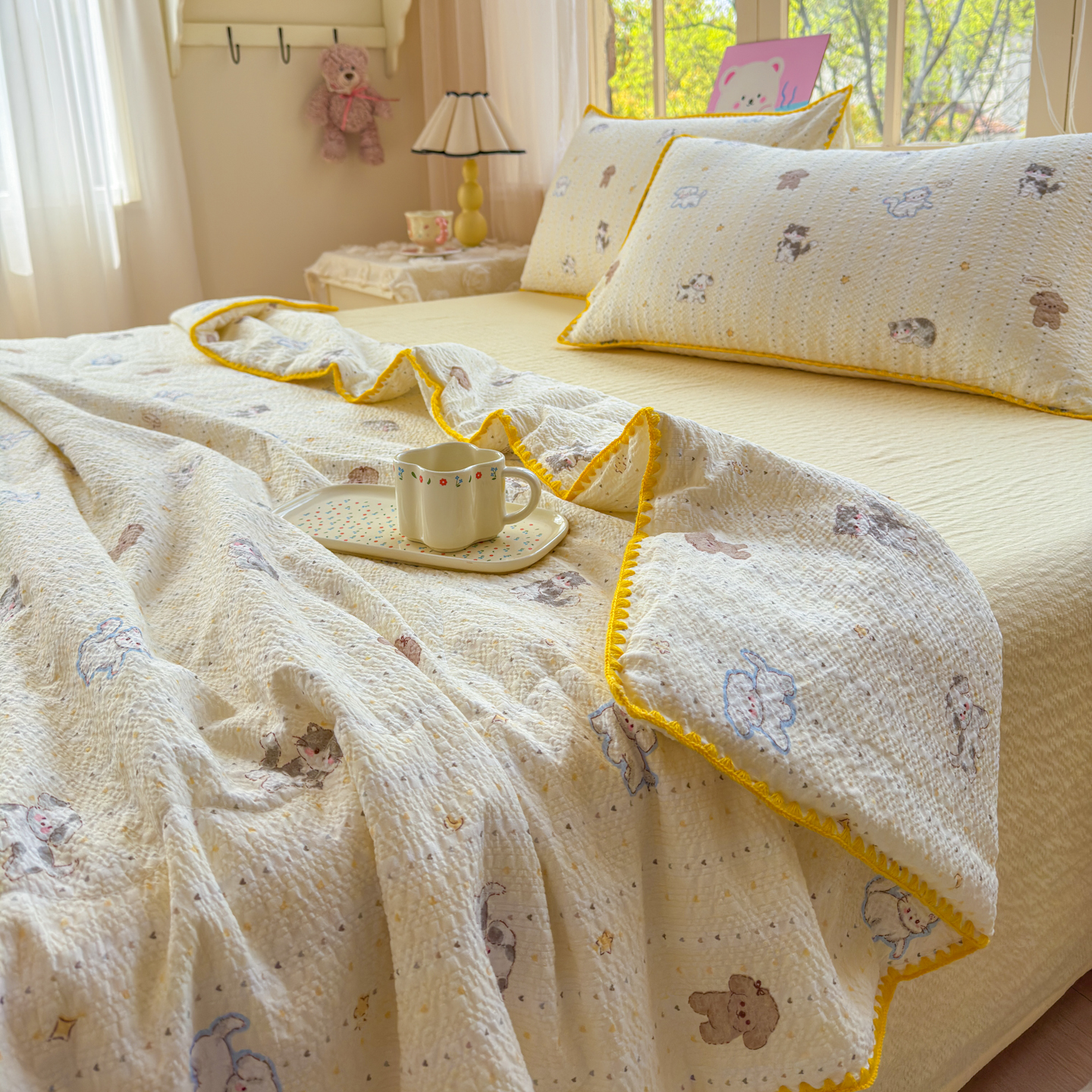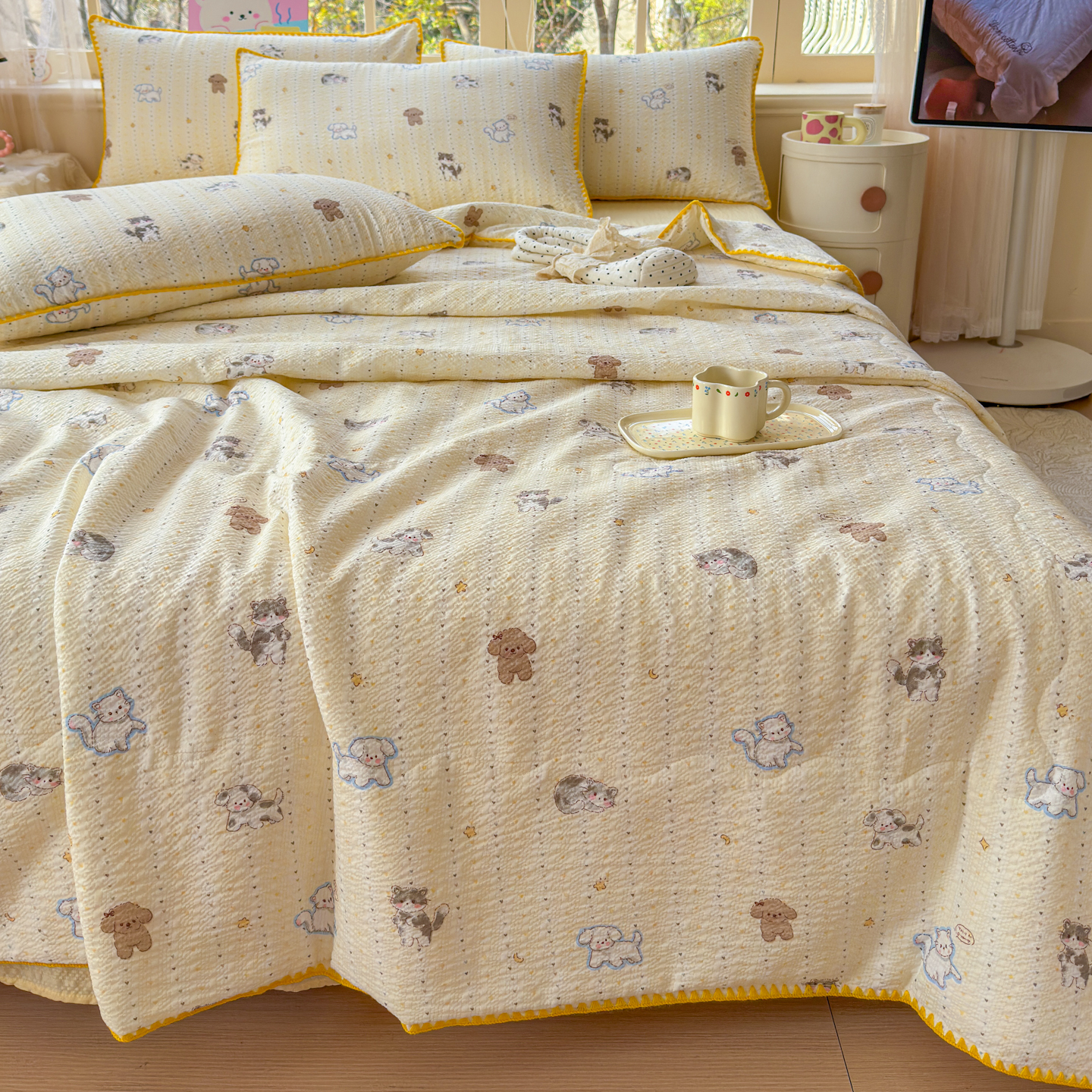 (总)仟网汇 2026新款贝壳边泡芙纱三角针夏被四件套,滑板狗,丽莎,奶油小狗,柿柿如意,甜心小兔,夏被叠拍
