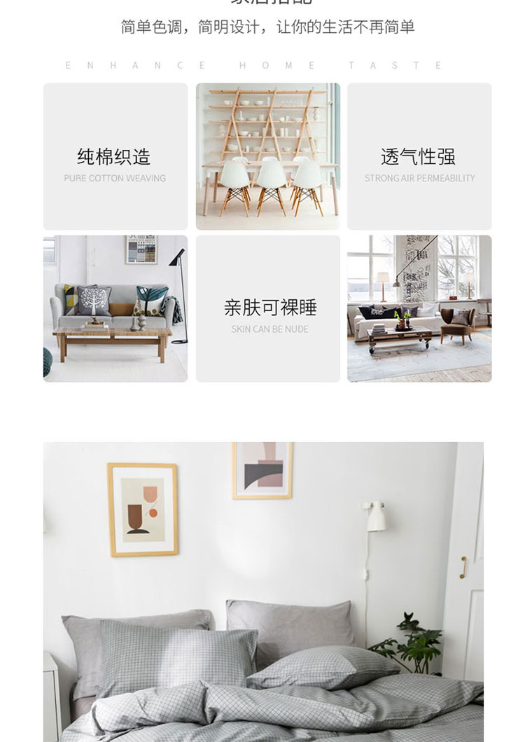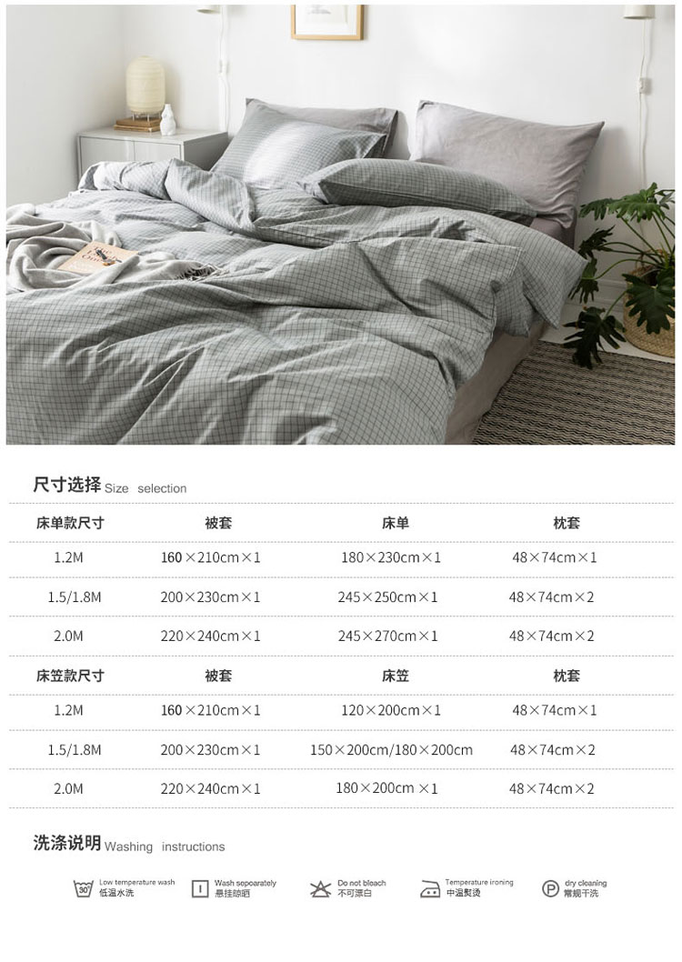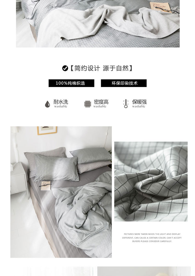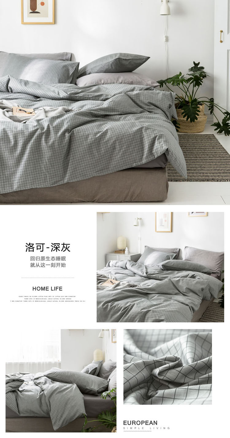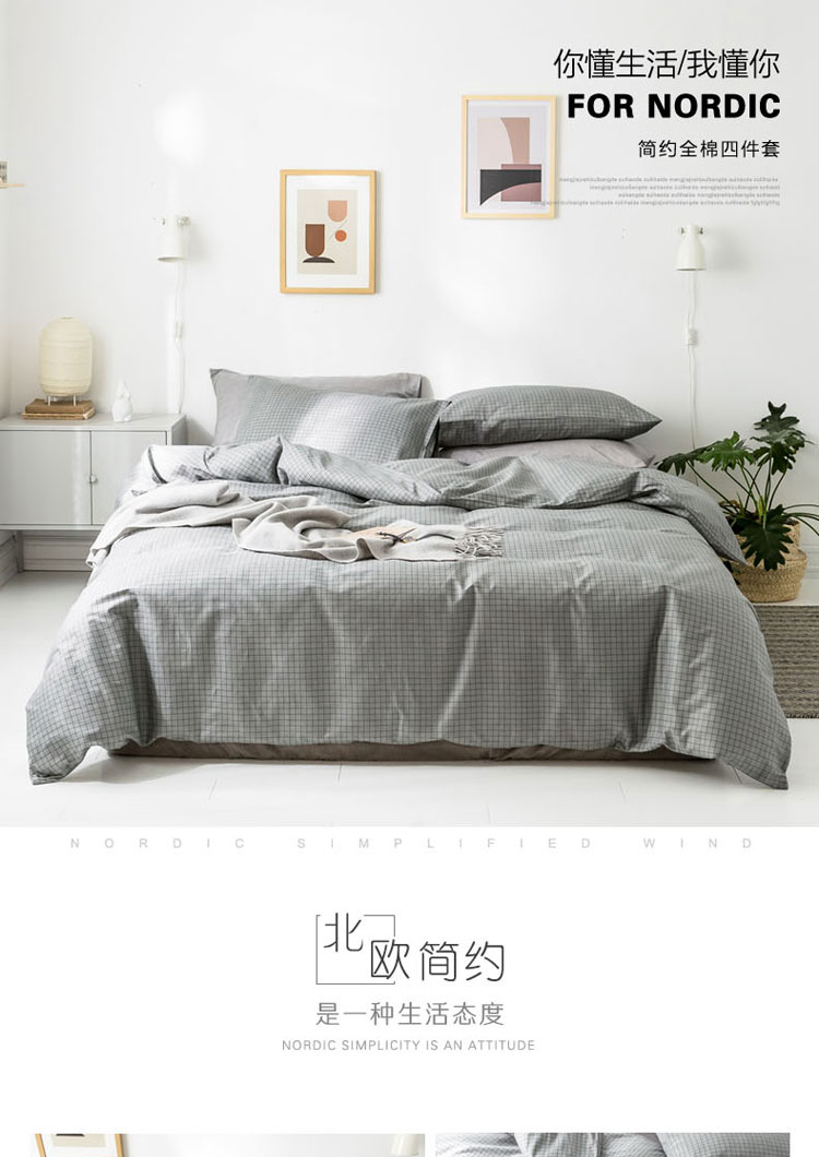 商品名称:梦家居 2019新品北欧简约全棉四件套 洛可-深灰