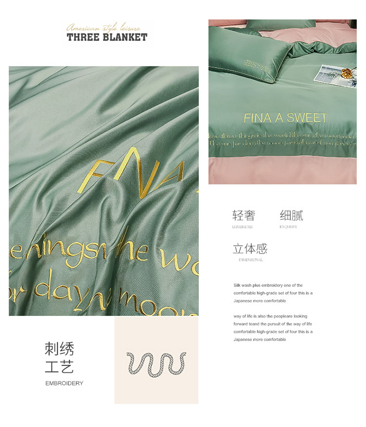 (总)润缦 2020新款水洗真丝四件套双拼系列,宾利蓝+浅豆沙,灰草绿+玫瑰粉,姜黄+绅士灰,墨绿+姜黄,浅豆沙+浅石兰,浅豆沙+绅士灰,浅灰+玫瑰粉,浅灰+绅士灰,月光蓝+梵星蓝,中国红