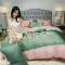 润缦 2020新款水洗真丝四件套双拼系列 灰草绿+玫瑰粉