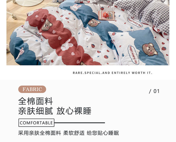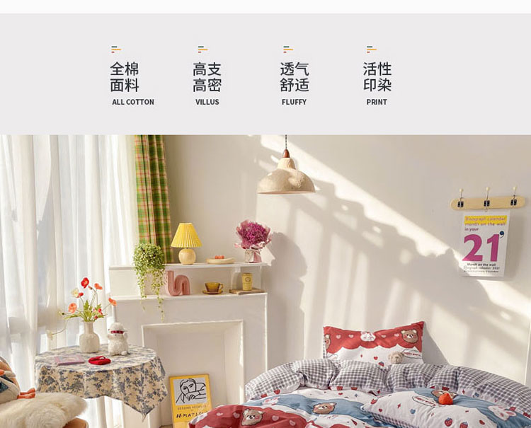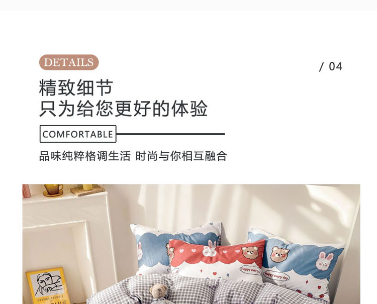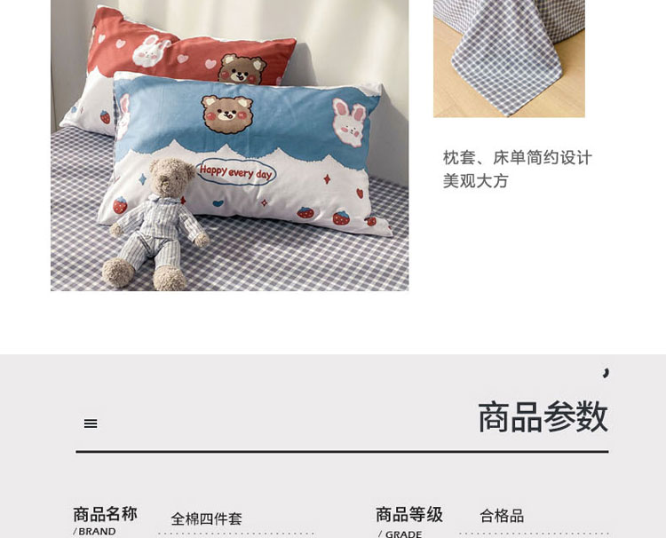 当前位置: 91家纺网 > 商品网购 > 床品套件 > 四件套 > 全棉普通四件套 > 梦家居 2021春季新品全棉小清新四件套 安迪小熊