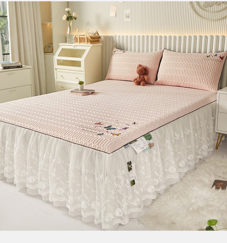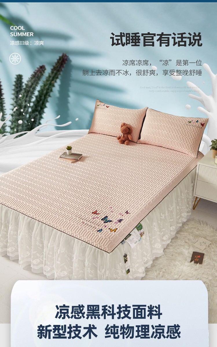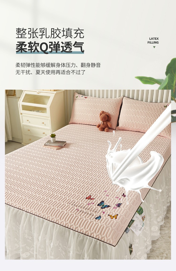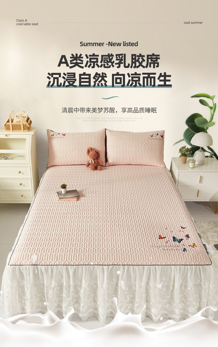 好眠好梦 2023新款A类乳胶床裙凉席-蝶恋花系列 樱花粉
