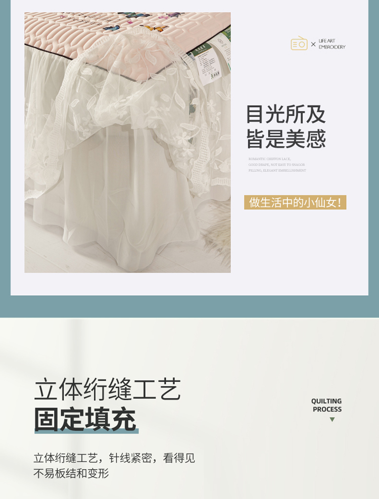 (总)好眠好梦 2023新款全棉133*72蕾丝单床裙,白玫瑰,弗洛伦,克莱因 蓝,洛神,情人节,温语 黑,温语 蓝,永恒花语