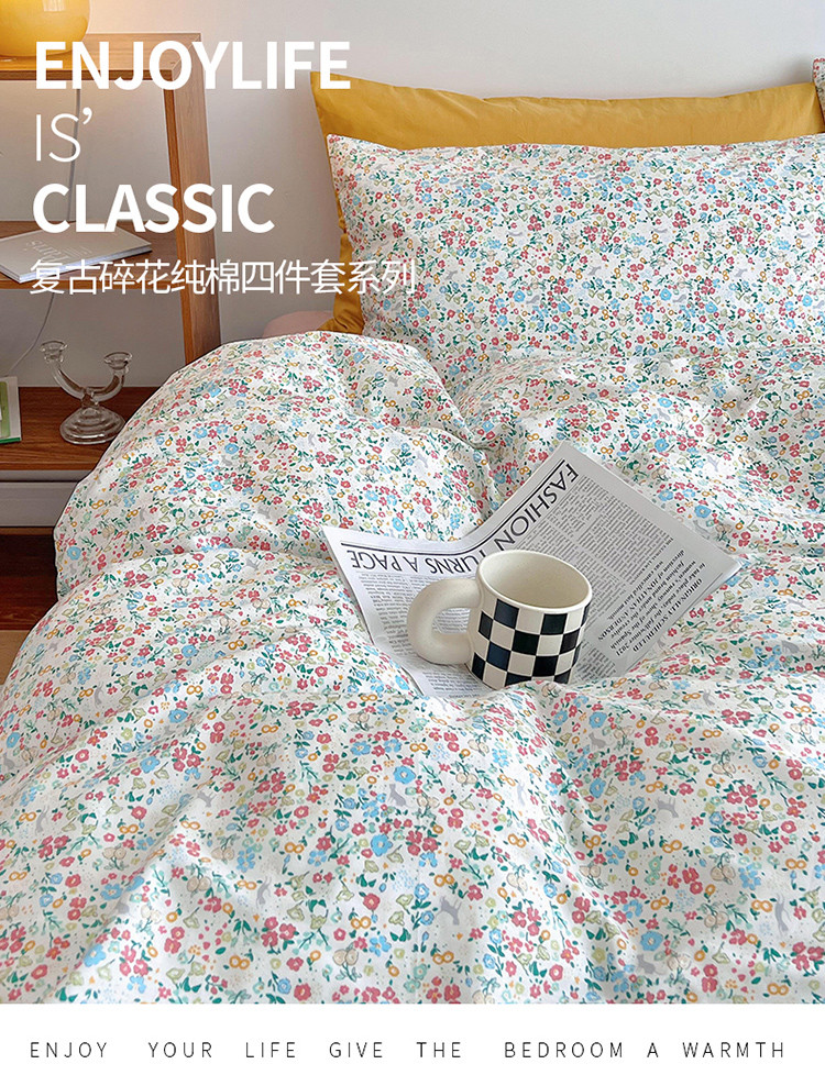 当前位置: 91家纺网 > 商品网购 > 床品套件 > 四件套 > 全棉普通四件套 > 艾沁 2022新款复古碎花纯棉四件套 春见