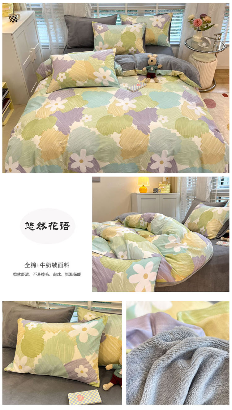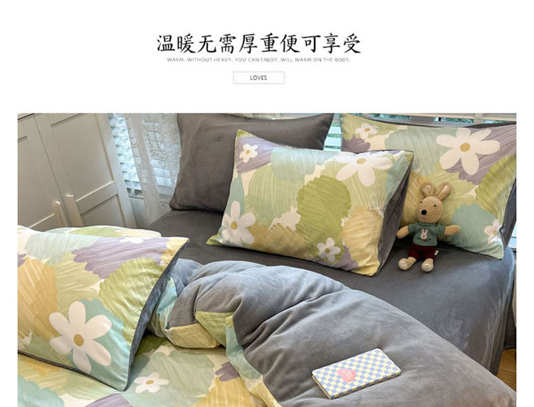 当前位置: 91家纺网 > 商品网购 > 床品套件 > 四件套 > 牛奶绒四件套 > 梦家居 2022新款秋冬新品全棉加牛奶绒四件套悠然花语绒