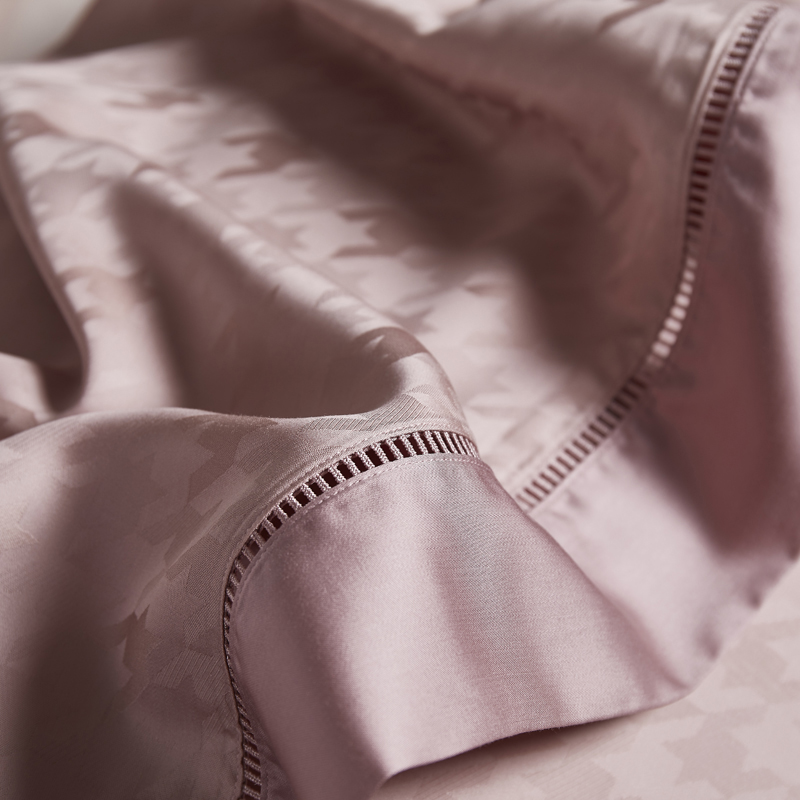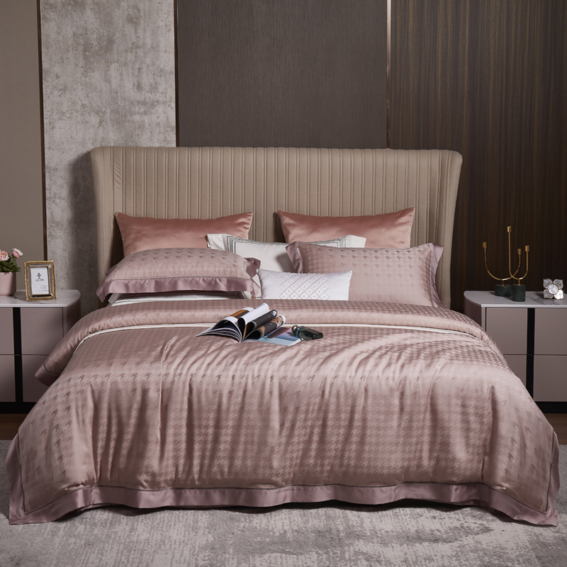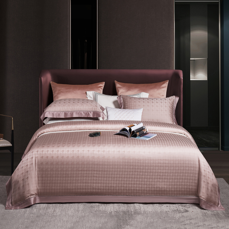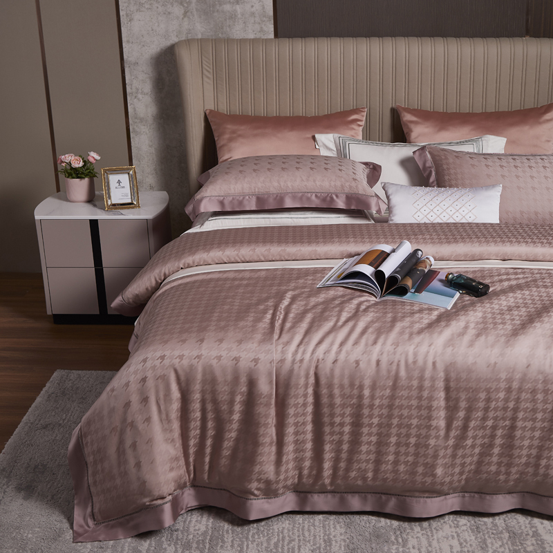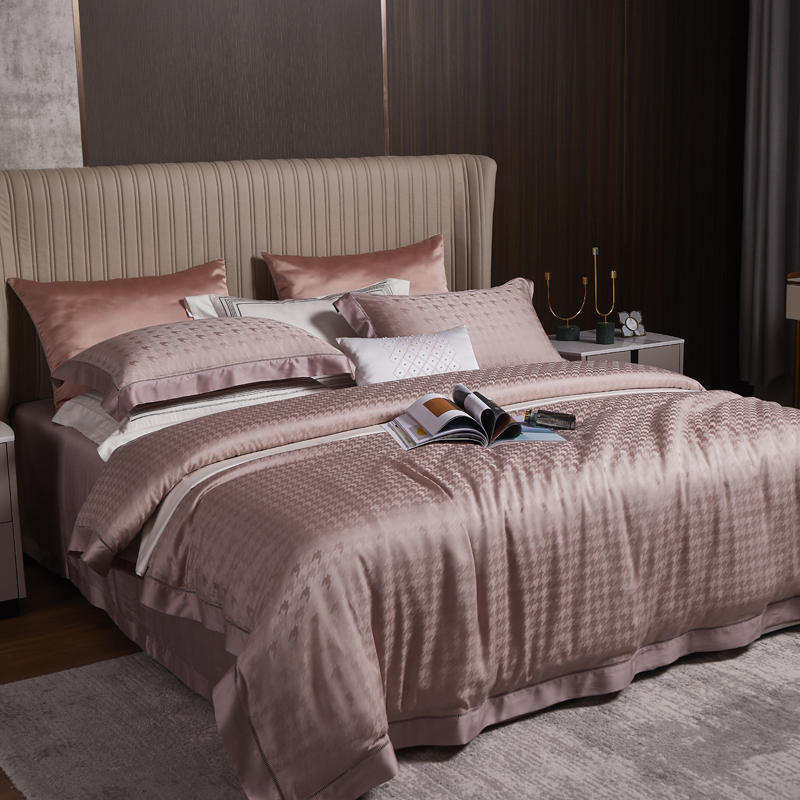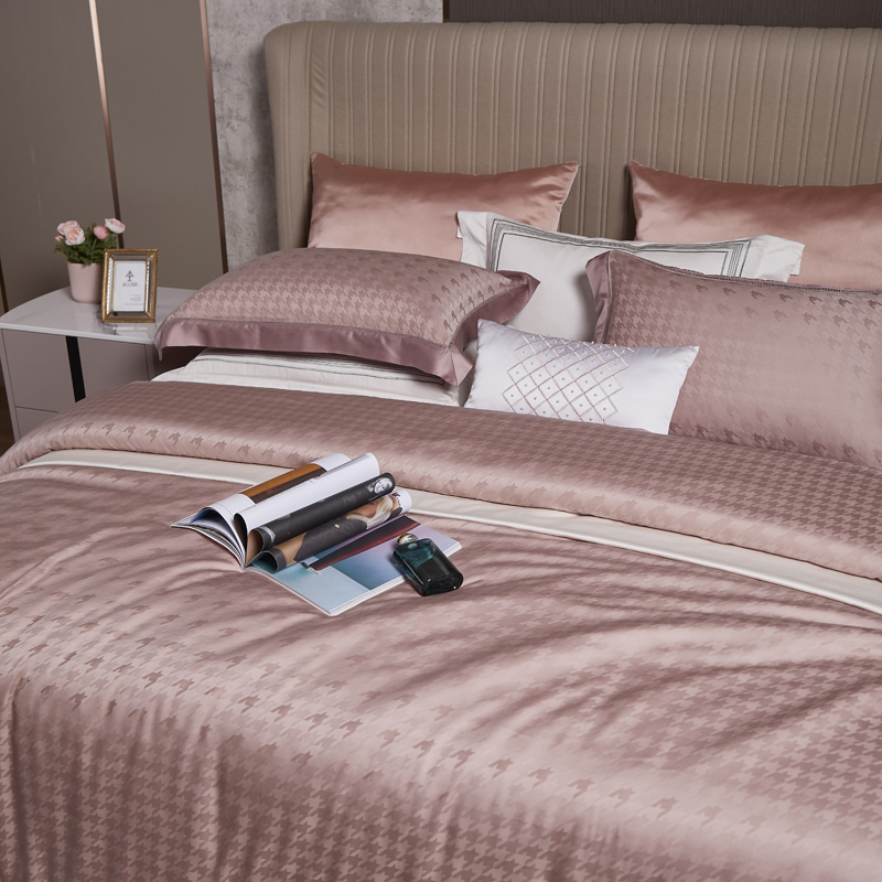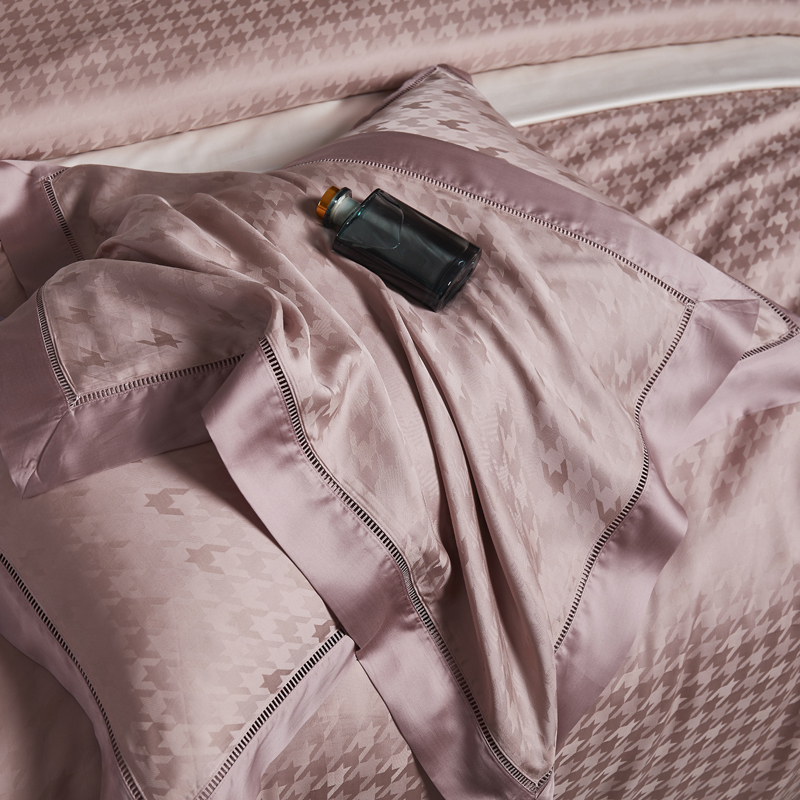 榻尚家居2023新款奥地利天丝镂空四件套-千鸟格约定玫瑰粉