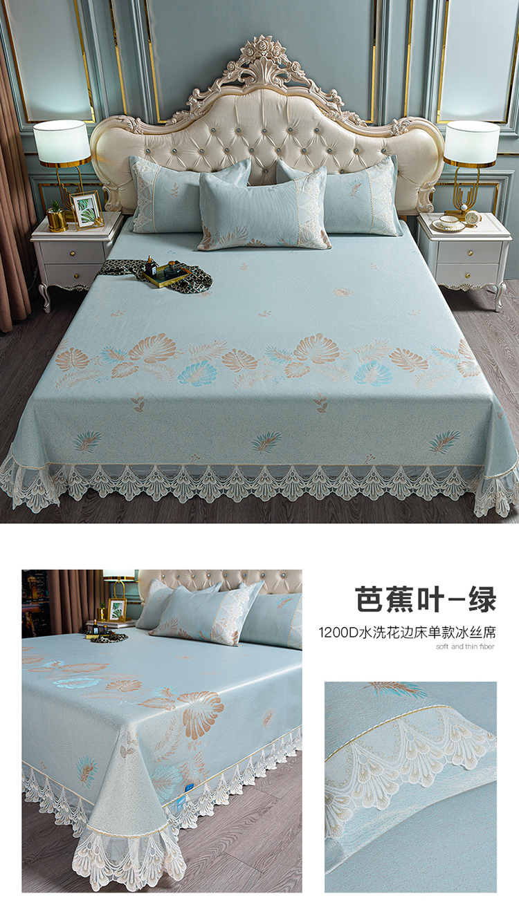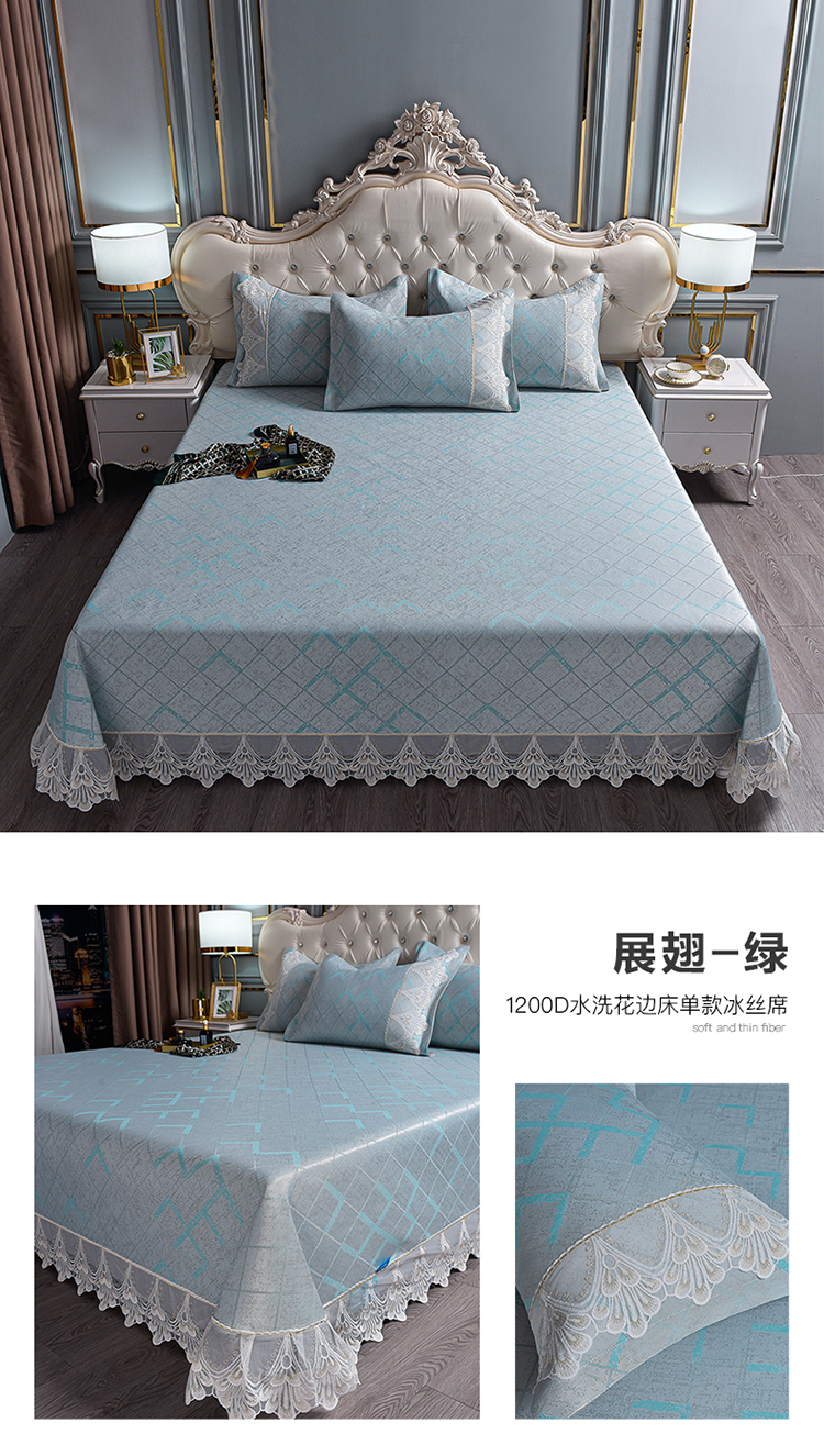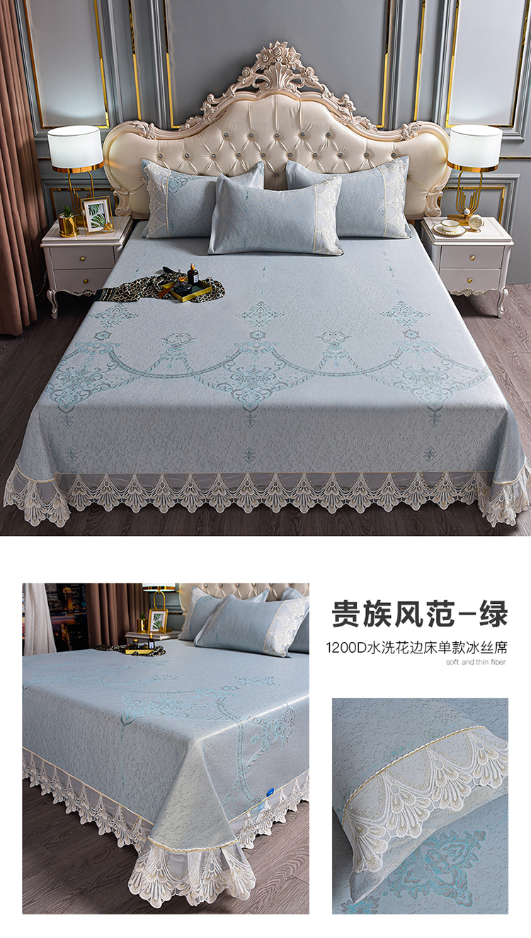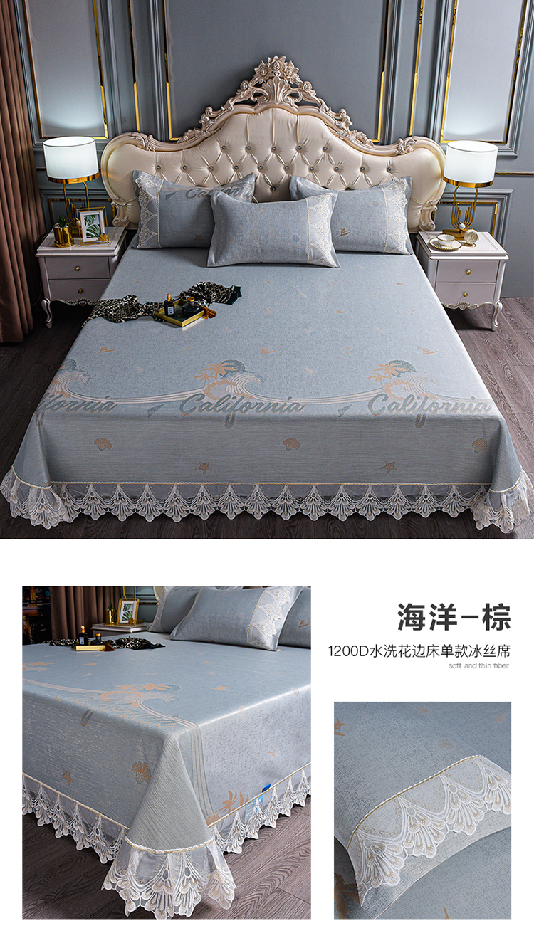 (总)印季家纺-2025新款1200D水洗冰丝花边床单款凉席