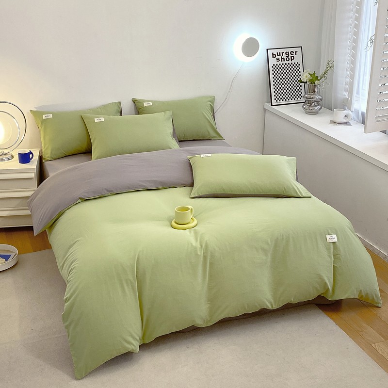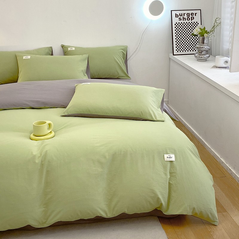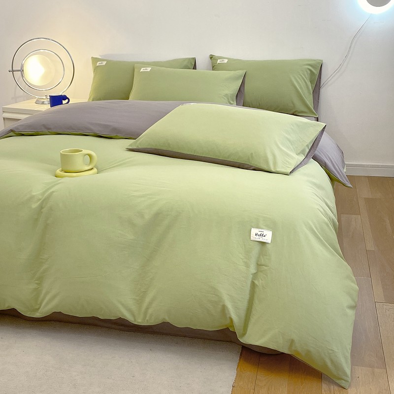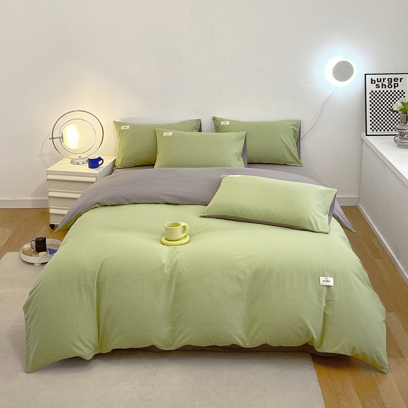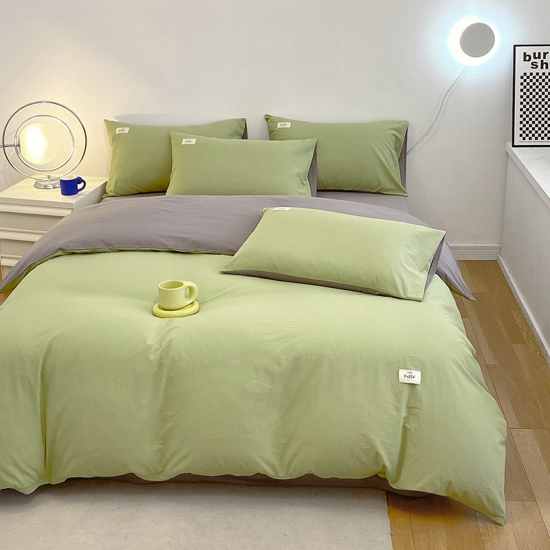 尚品本色 2023新款尚品本色水染水洗棉四件套 抹茶绿+浅灰