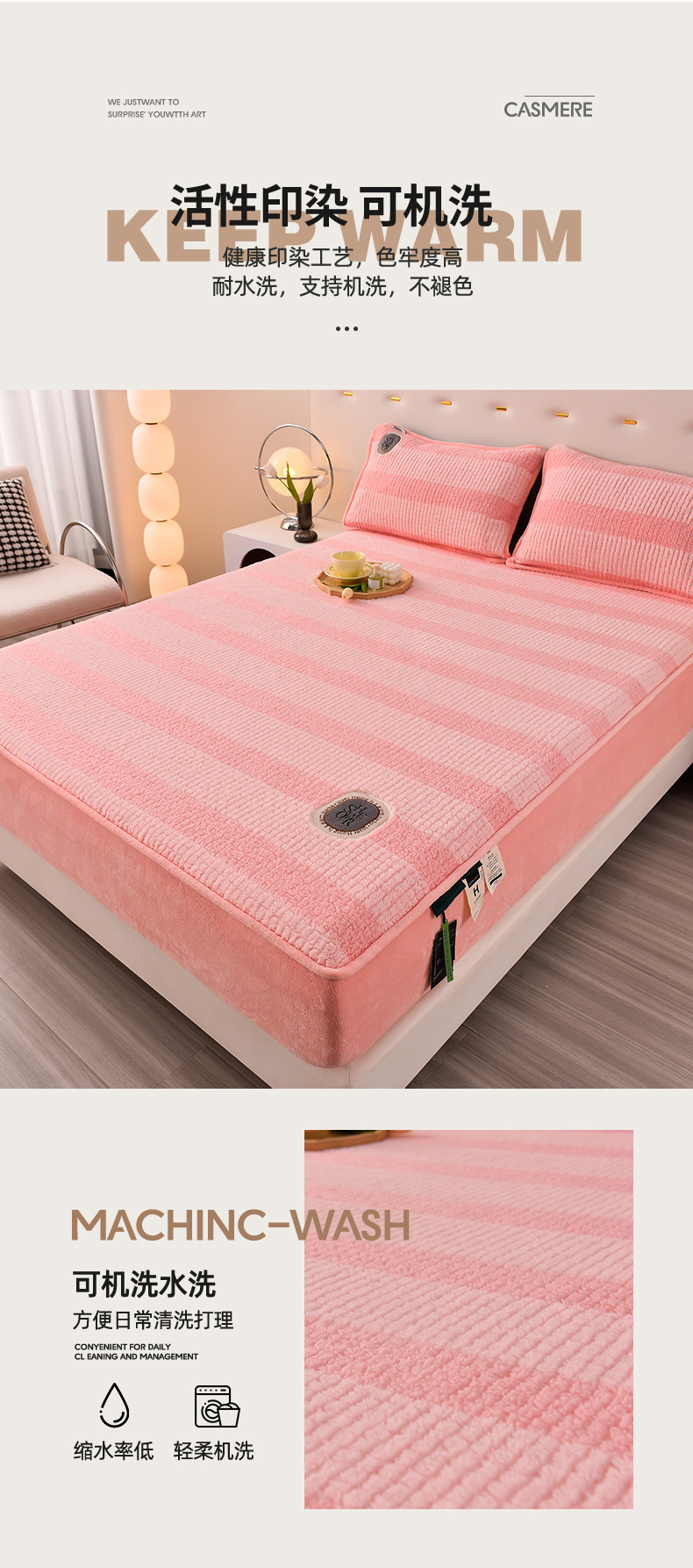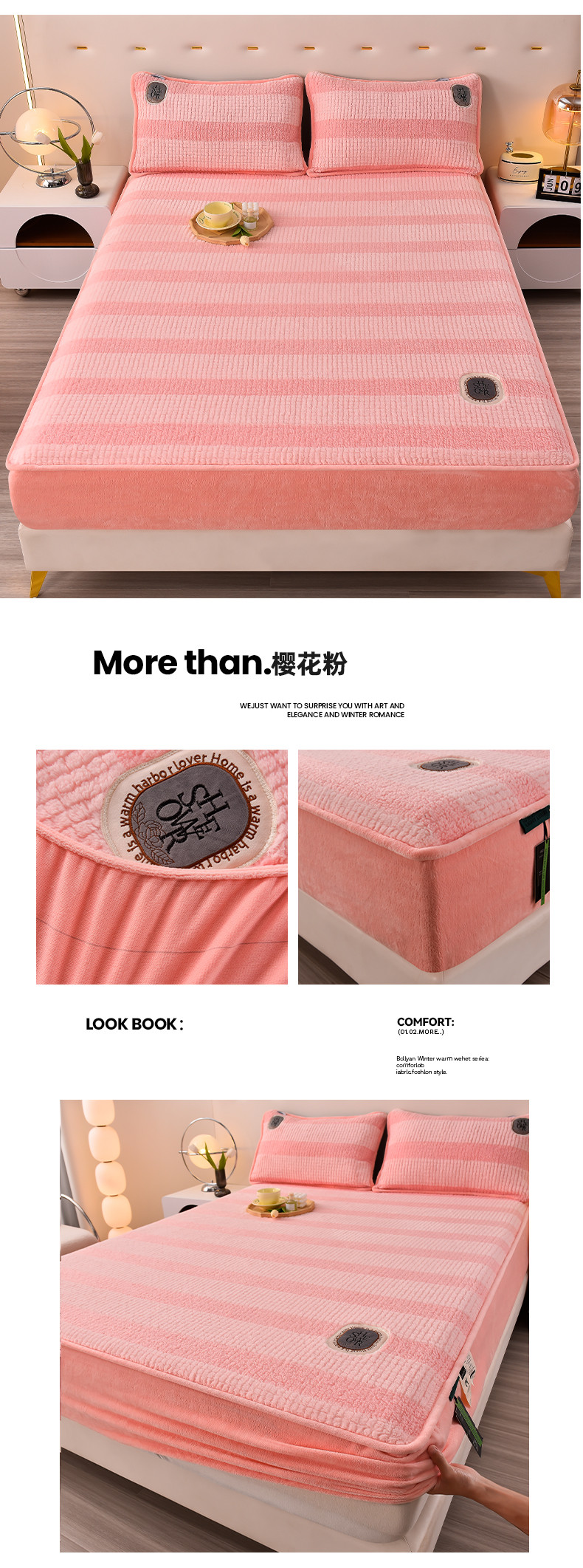 好眠好梦家纺 2023新款高端兔毛绒泰迪绒床笠-小资情调 小资情调-樱花粉
