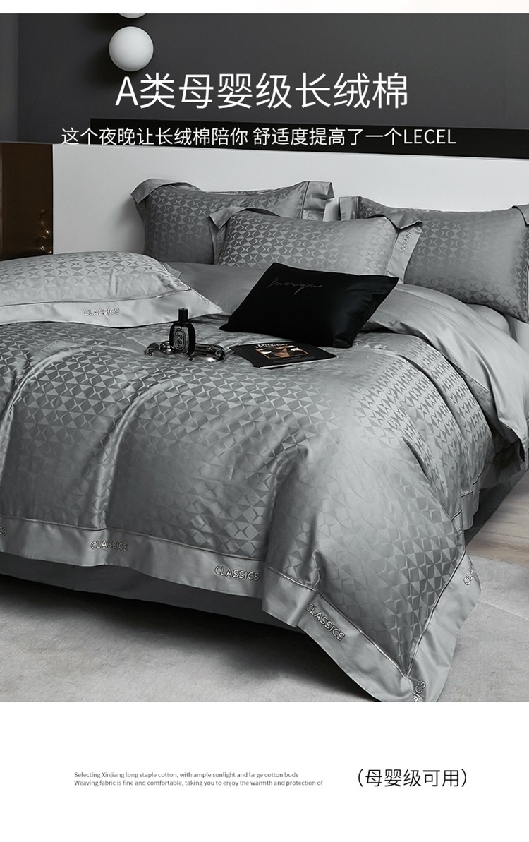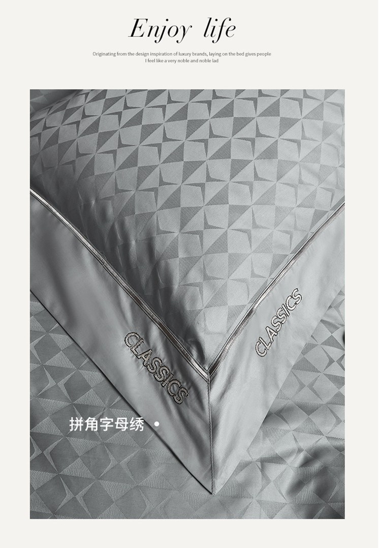 新款100支长绒棉提花拼角刺绣套件