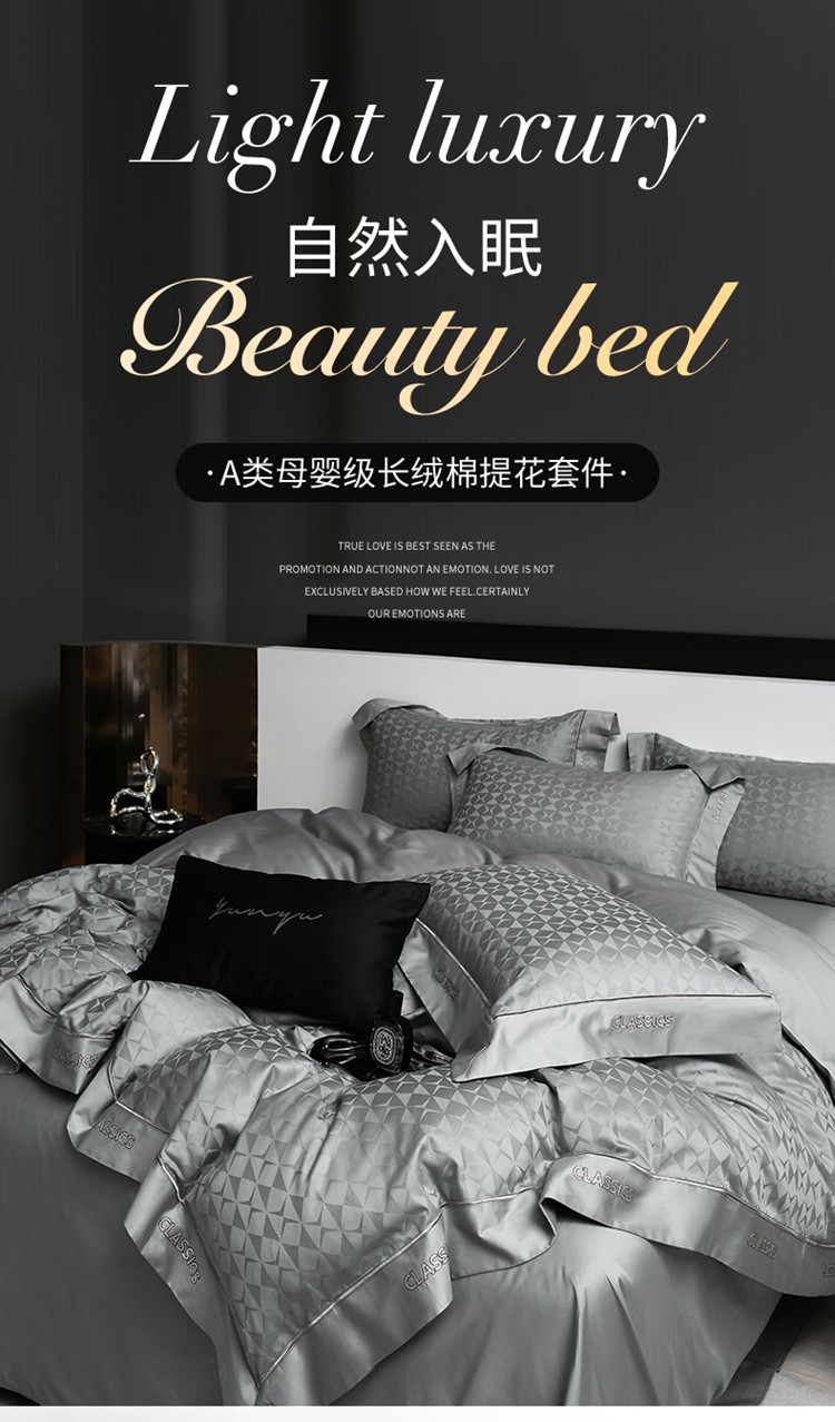 柔觉家纺 天丝刺绣贡缎提花全棉四件套,雅普诺-卡兰