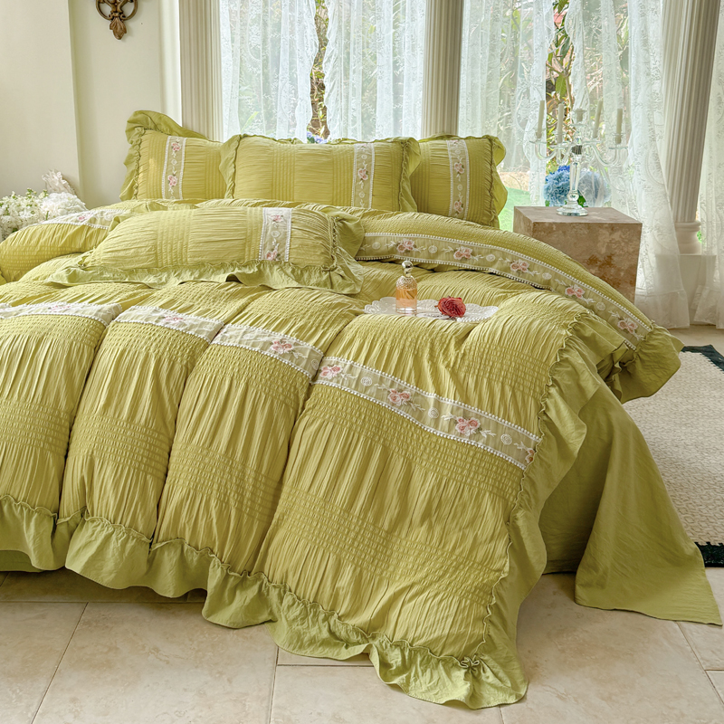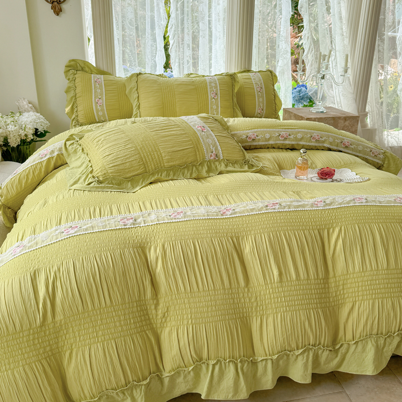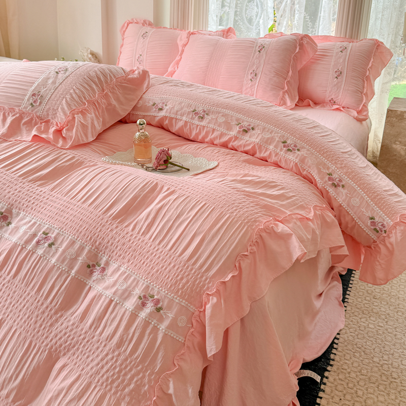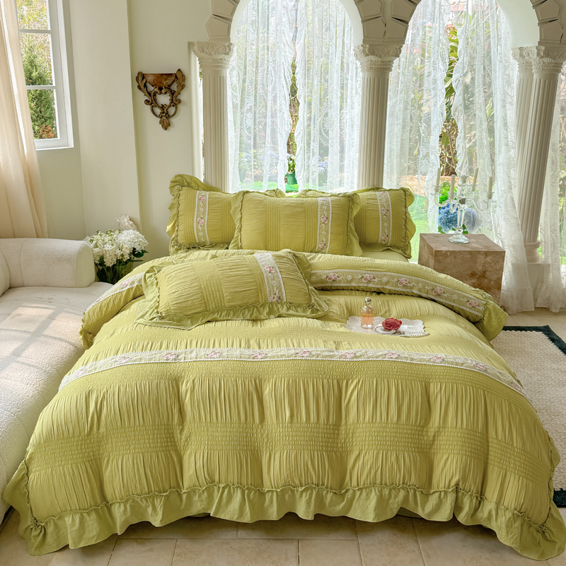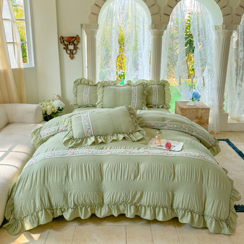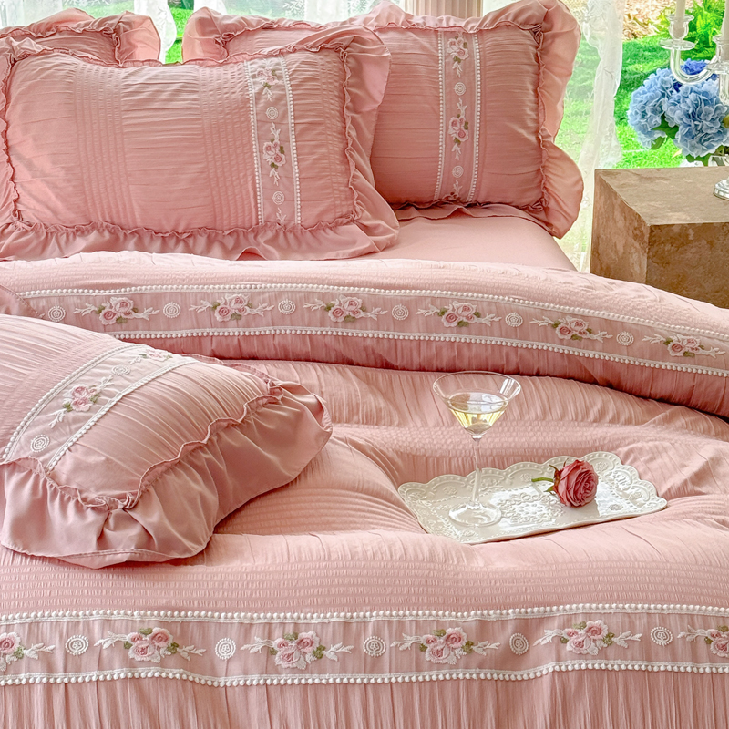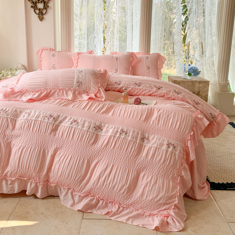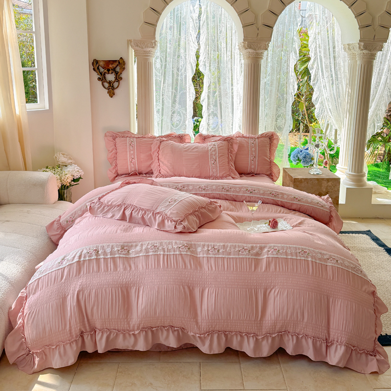 仟网汇 2024新款韩版泡泡纱刺绣花边四件套 泡泡纱-薰衣草紫