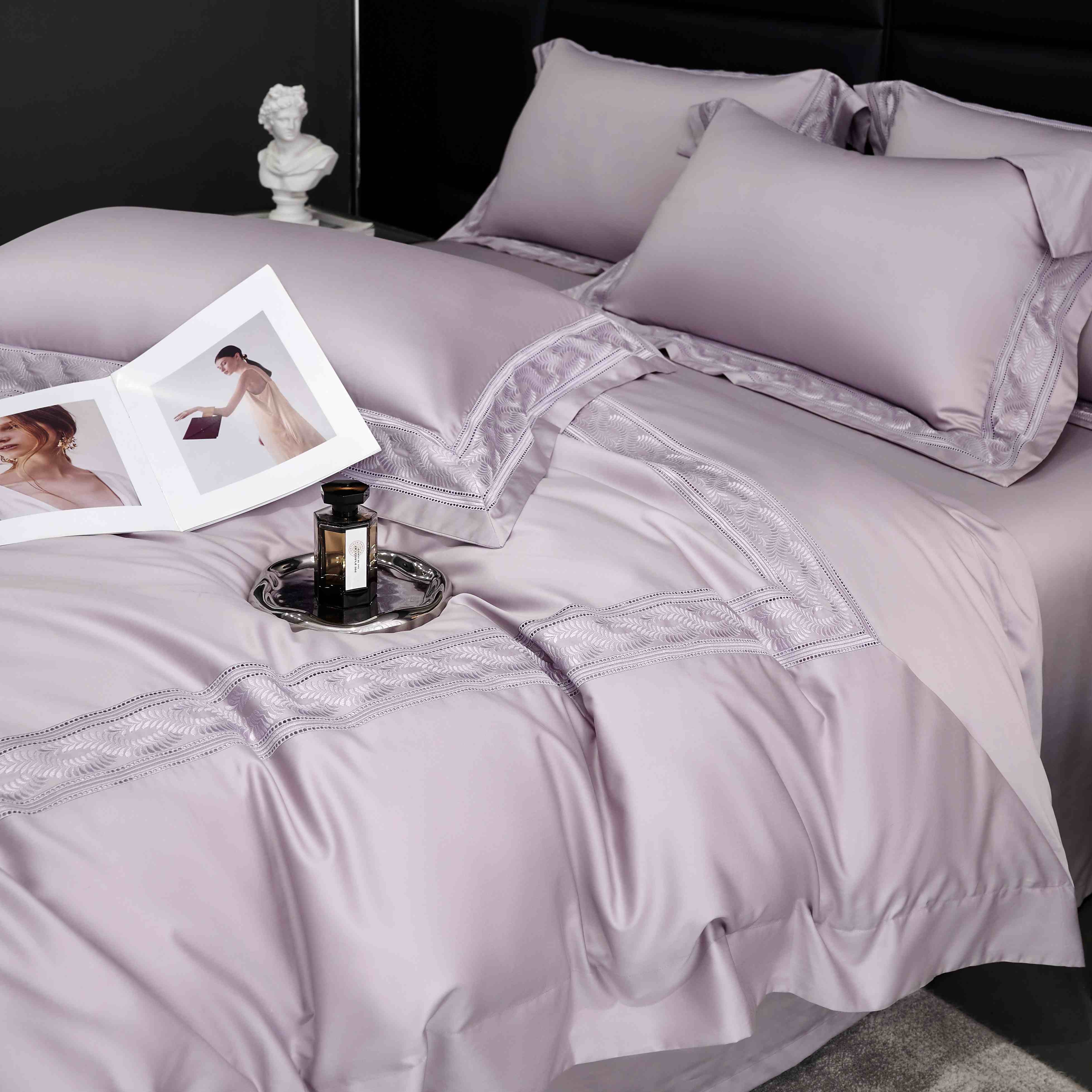 总榻尚家居 2023新款格瑞斯系列100贡缎长绒棉四件套工艺款四件套,格瑞斯紫,格瑞斯白,格瑞斯灰,格瑞斯蓝